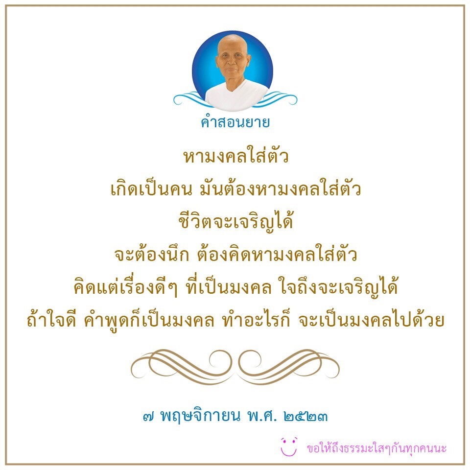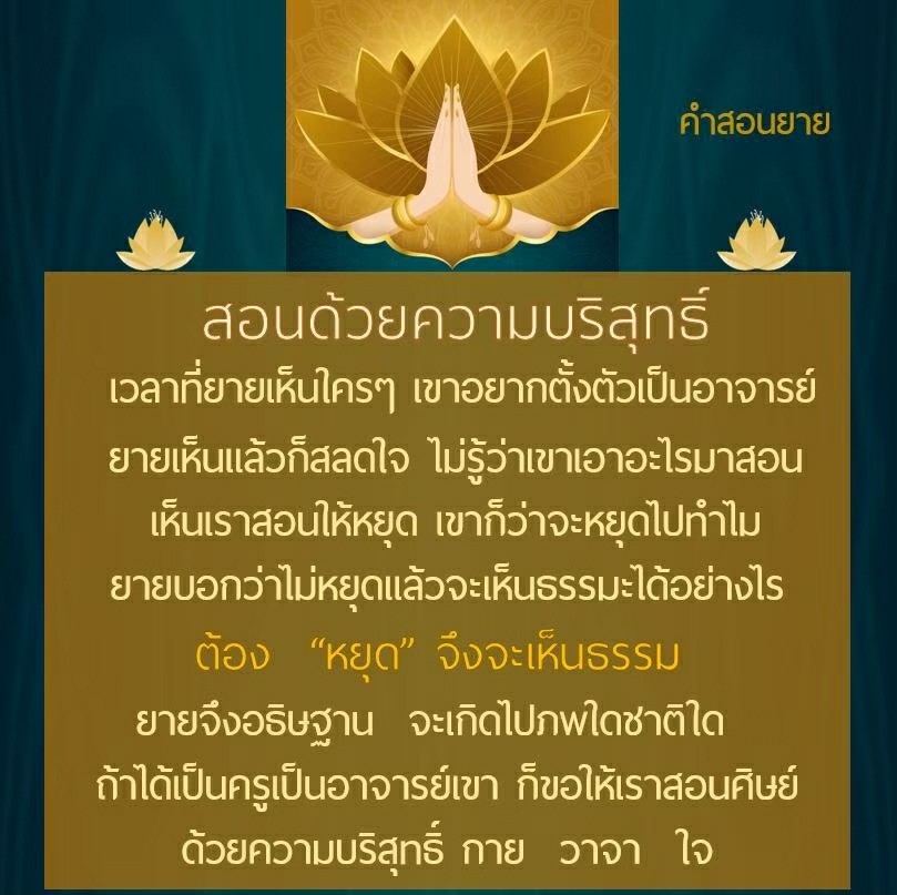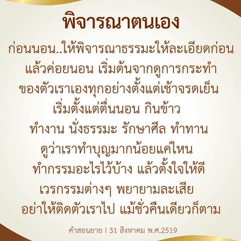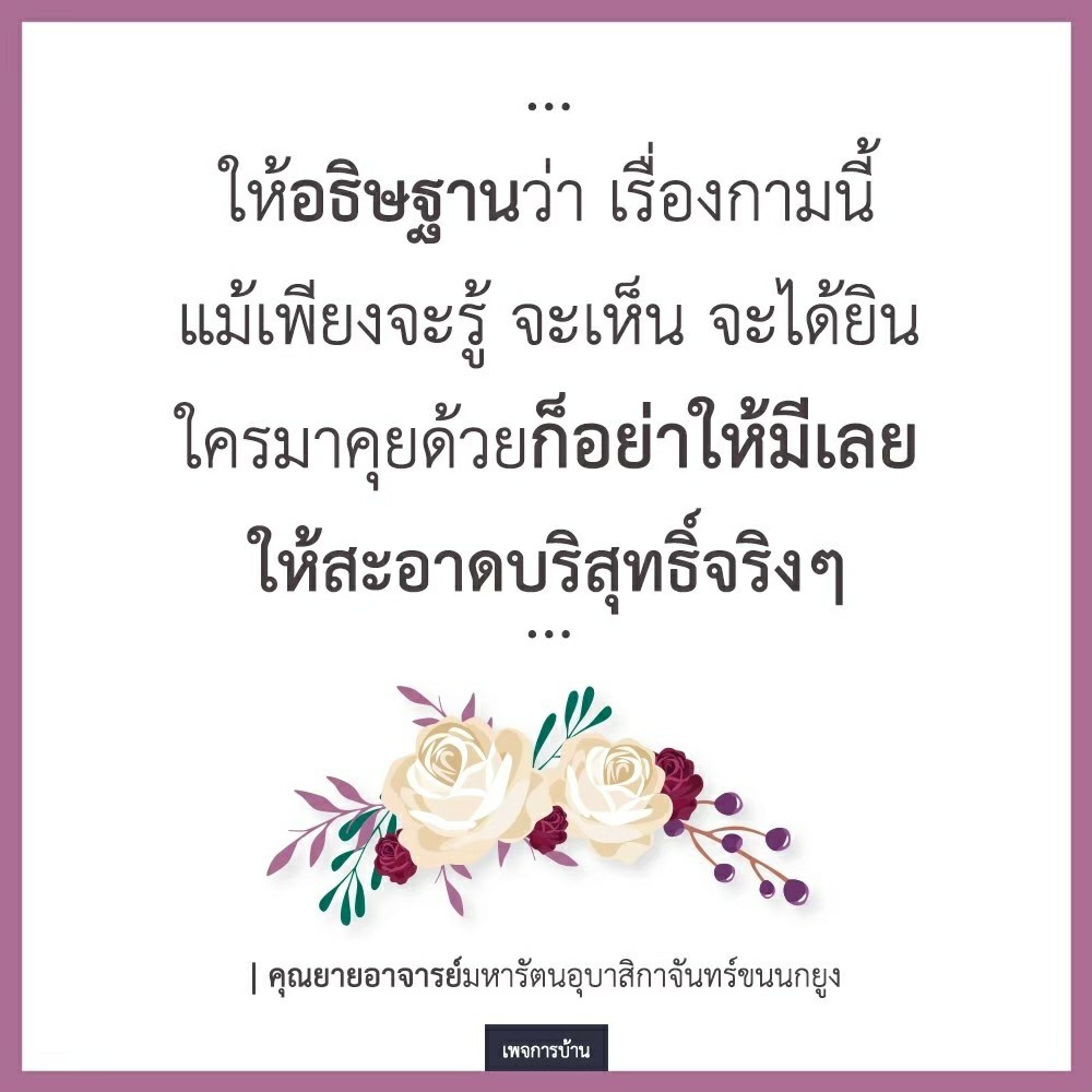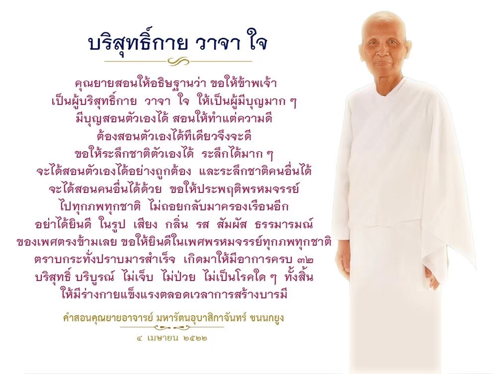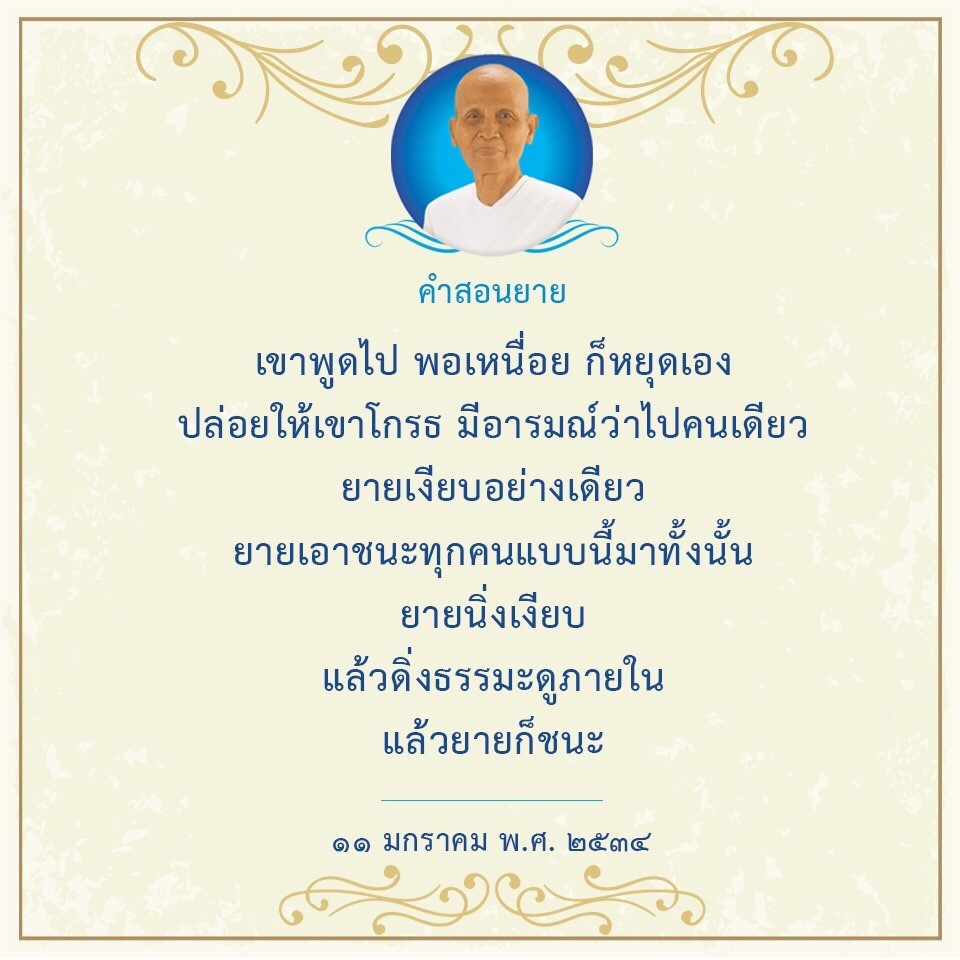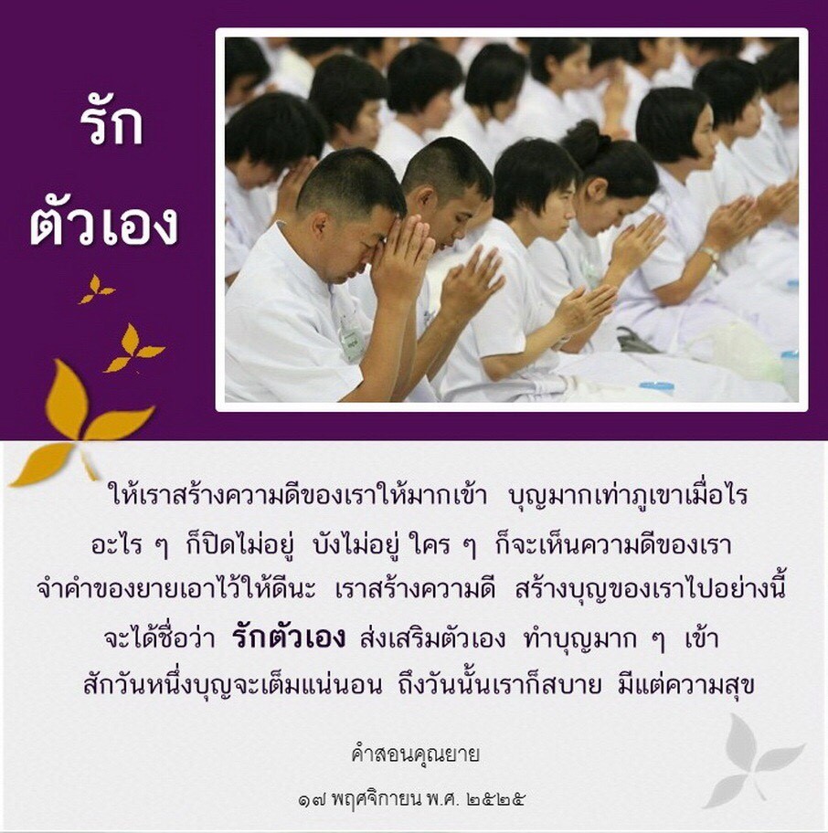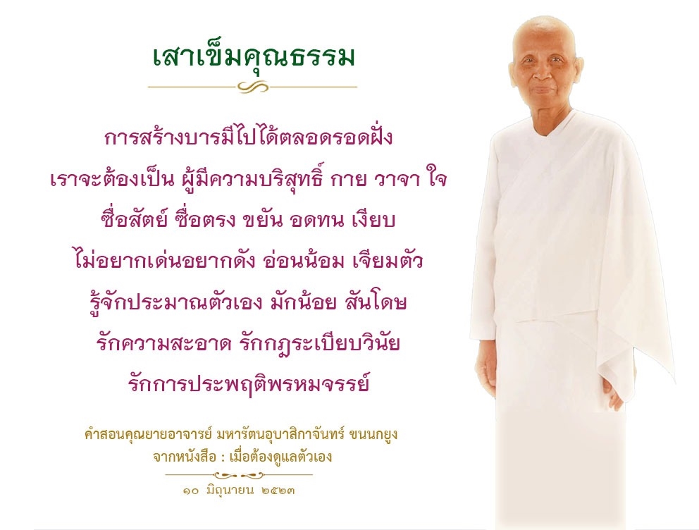 | As I converse with various people, I keep my mind always in its purified state, always centered in merit and in Dhamma. No greed, anger, nor delusions are allowed to defile me.