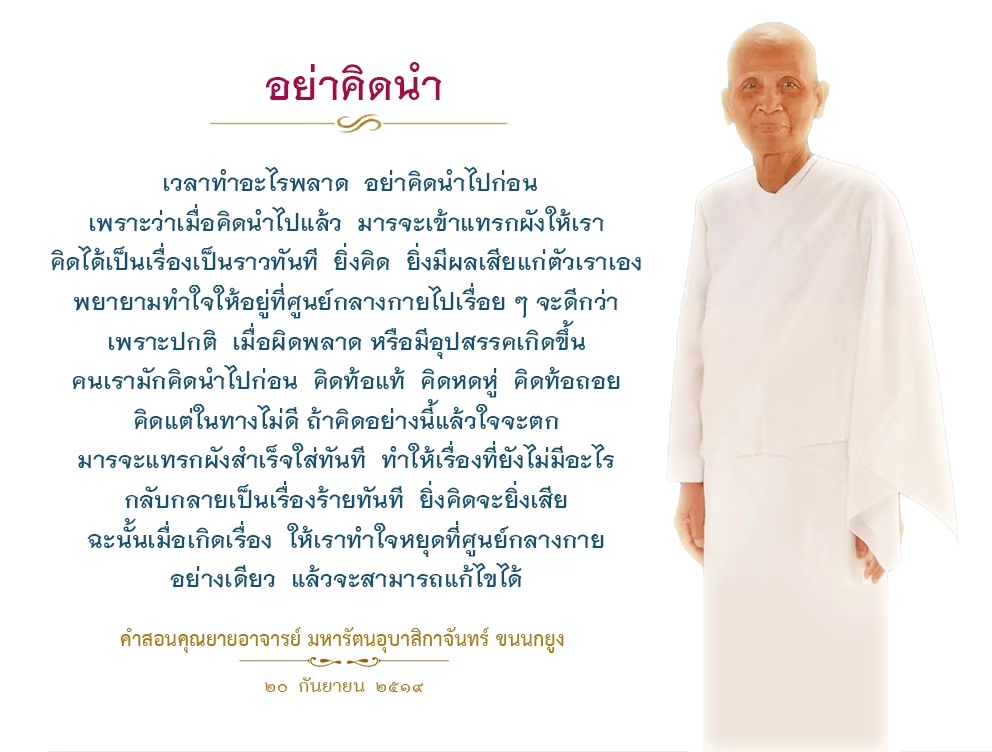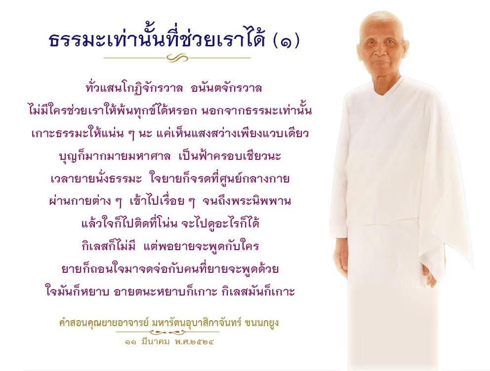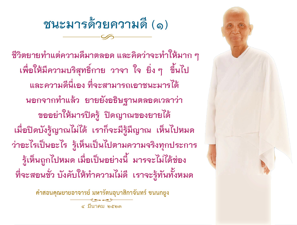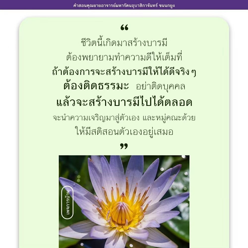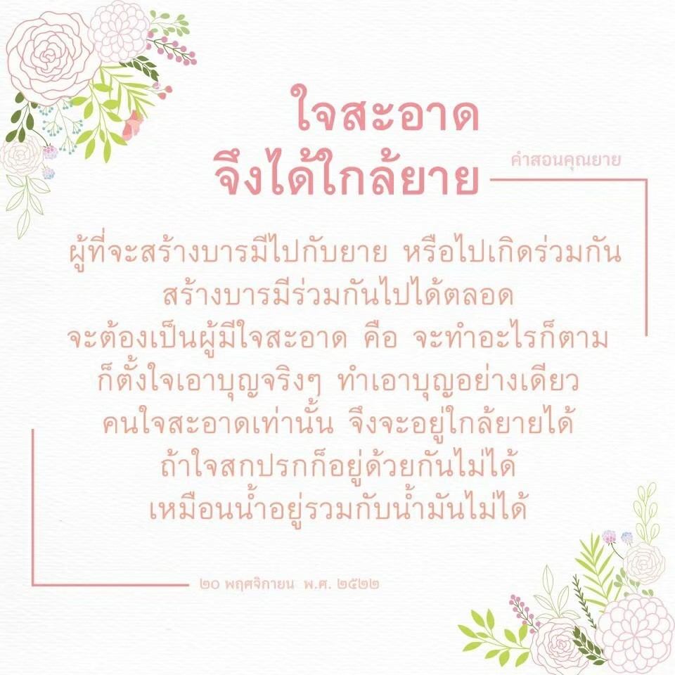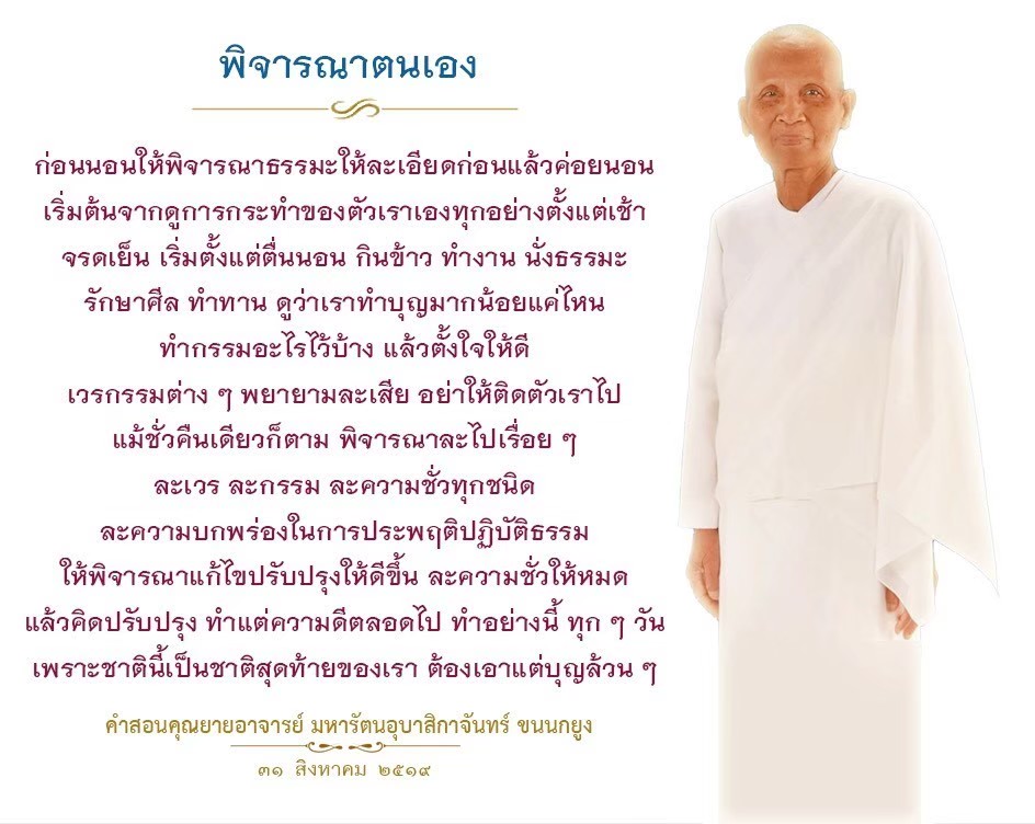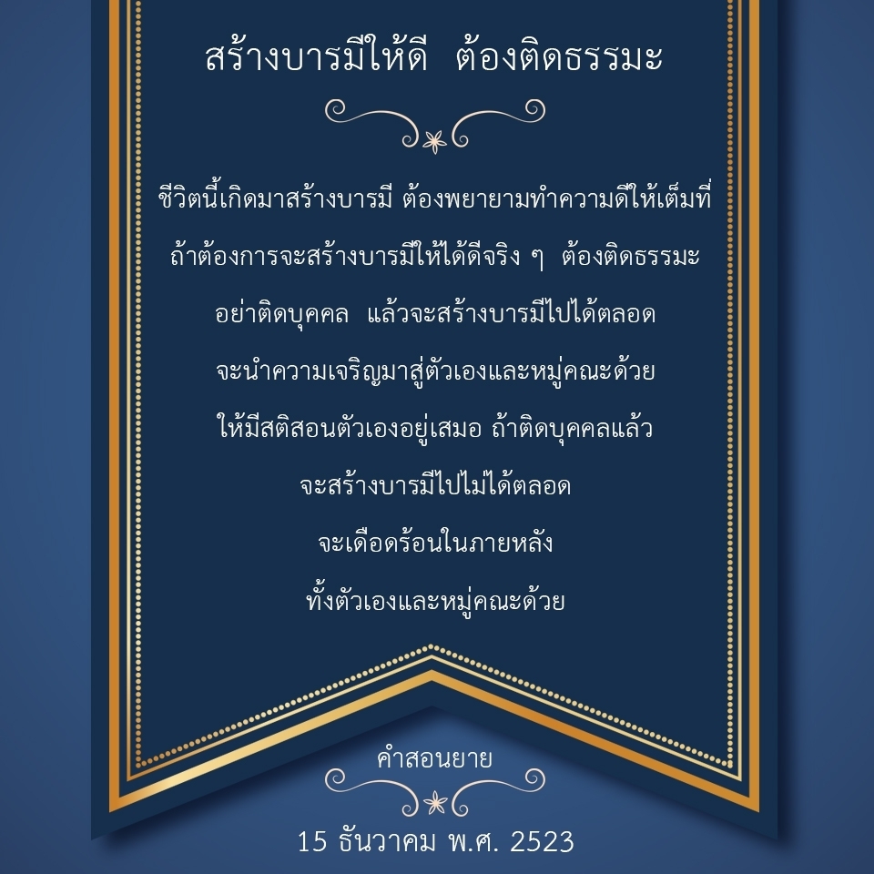 | As I converse with various people, I keep my mind always in its purified state, always centered in merit and in Dhamma. No greed, anger, nor delusions are allowed to defile me.