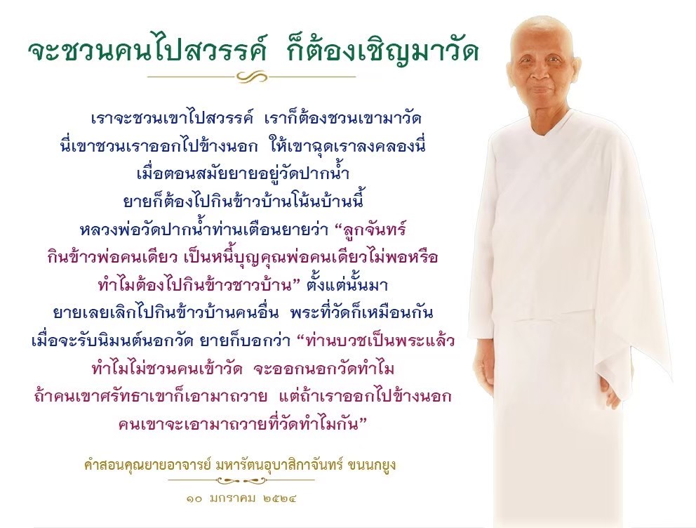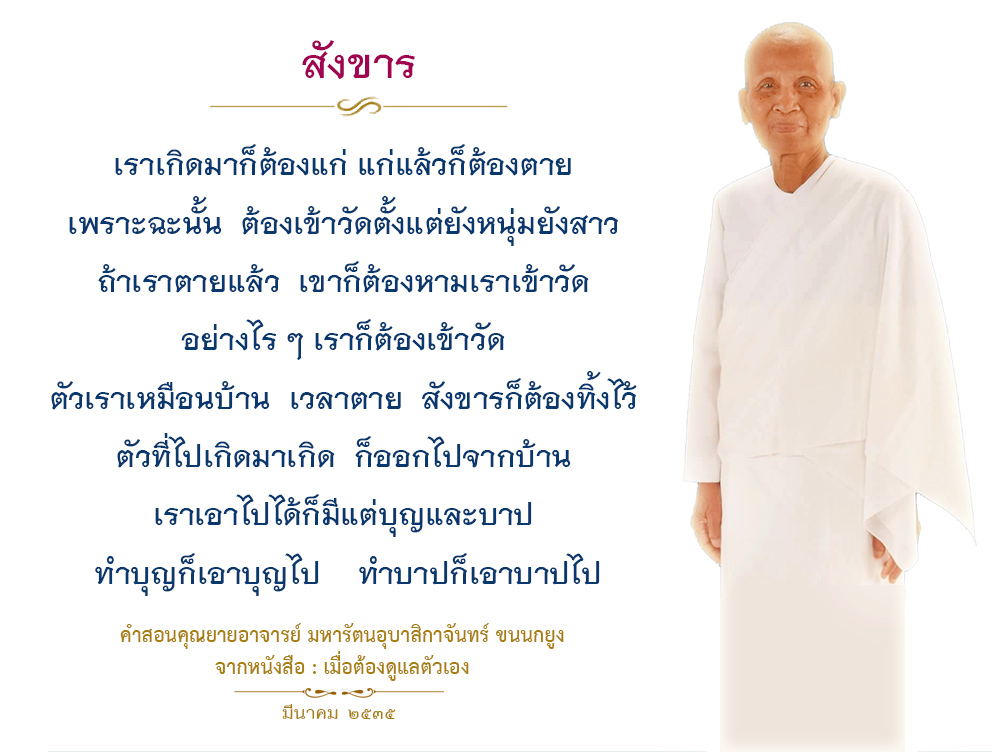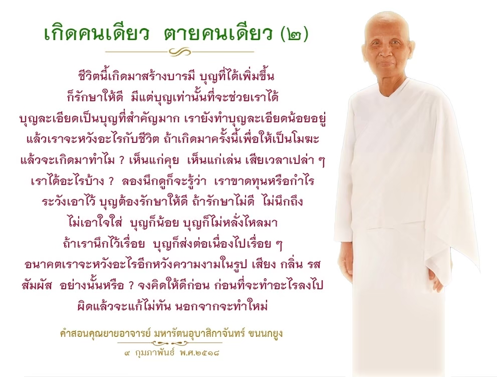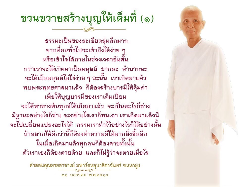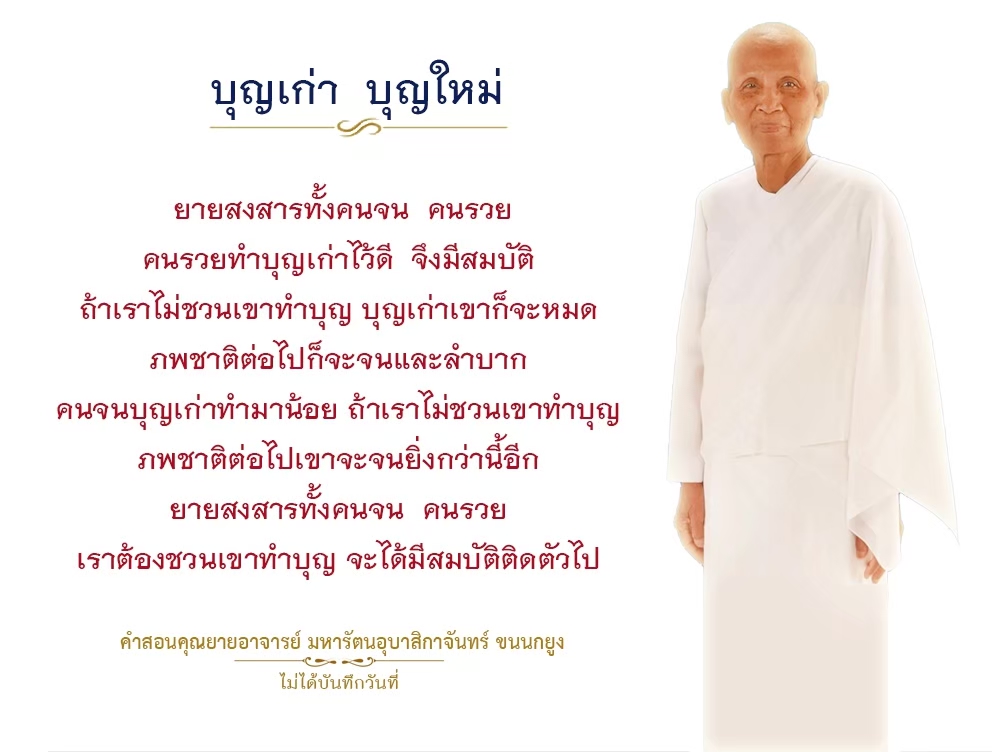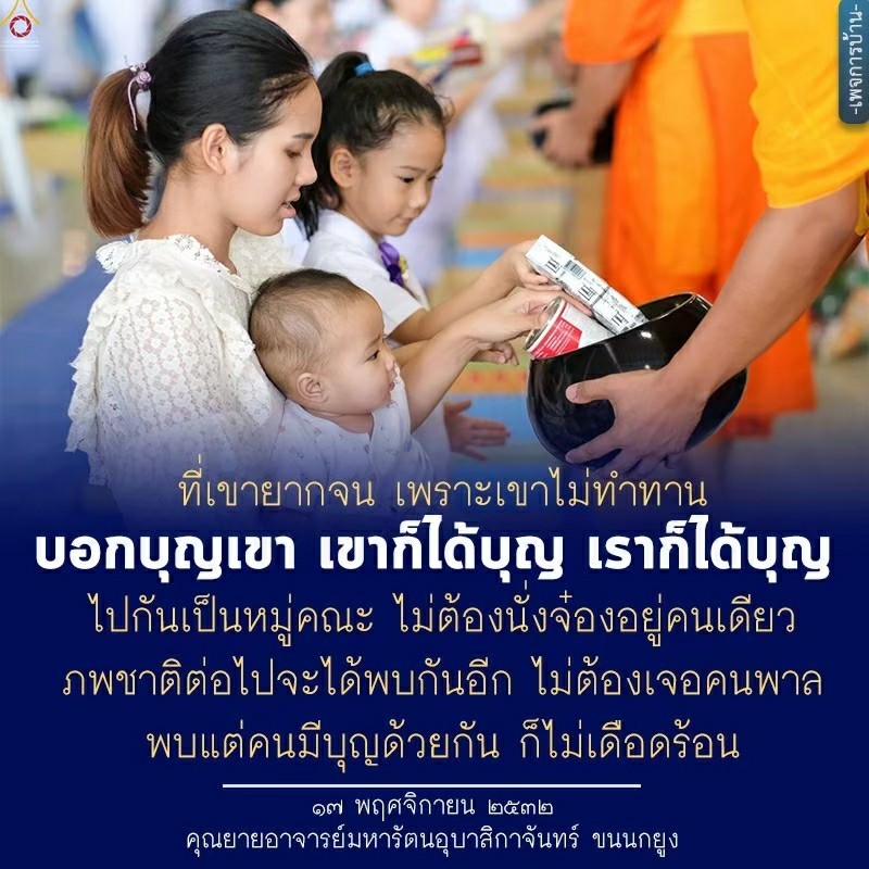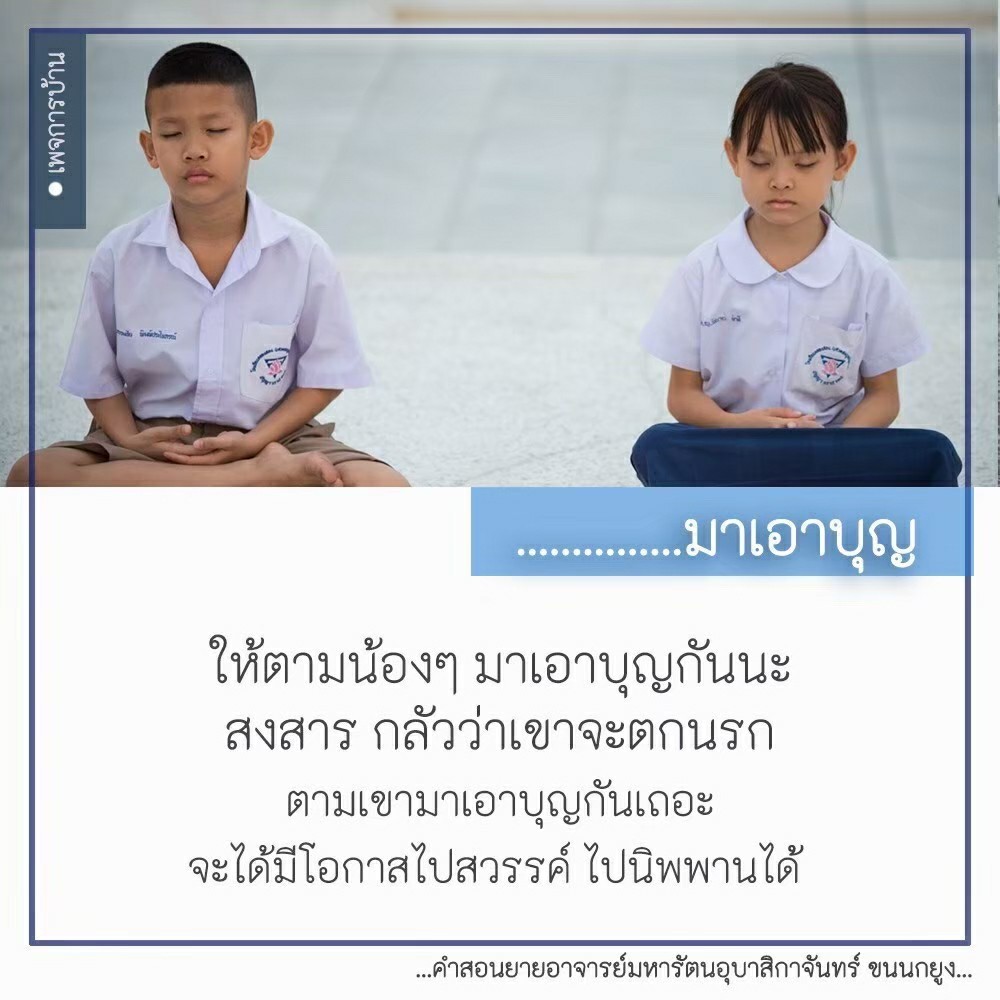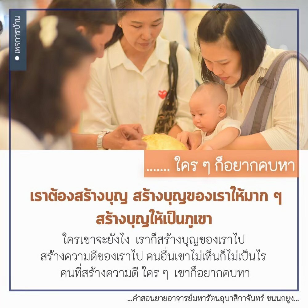 Invite your friends to come and reap merit at the temple. I feel pity for them, fearing that they may find themselves erroneously treading into an unhappy realm. Persuade them to perform merit so that they will have the opportunity to rise to Heaven or Nibbana.