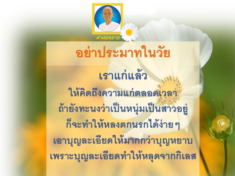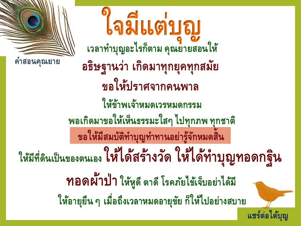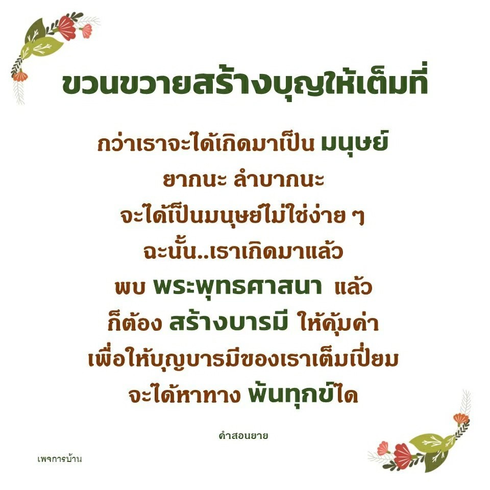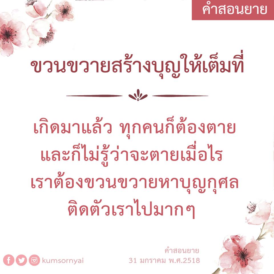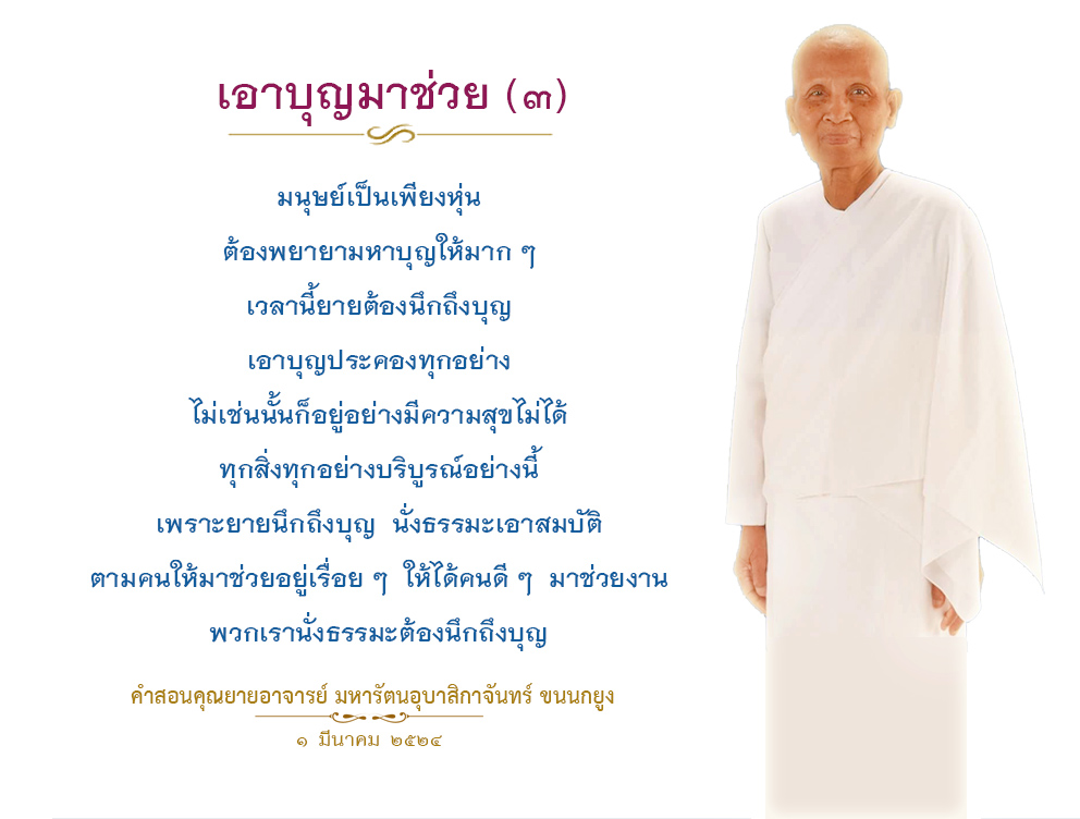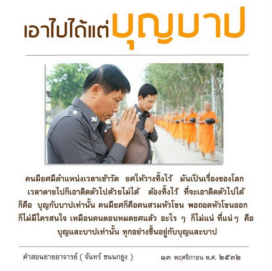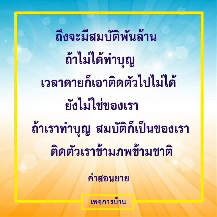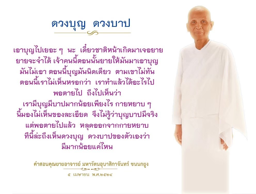 Invite your friends to come and reap merit at the temple. I feel pity for them, fearing that they may find themselves erroneously treading into an unhappy realm. Persuade them to perform merit so that they will have the opportunity to rise to Heaven or Nibbana.