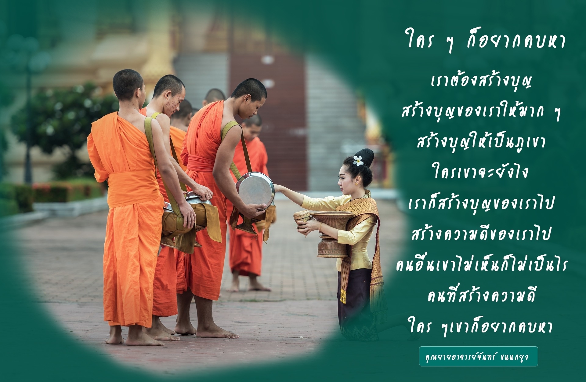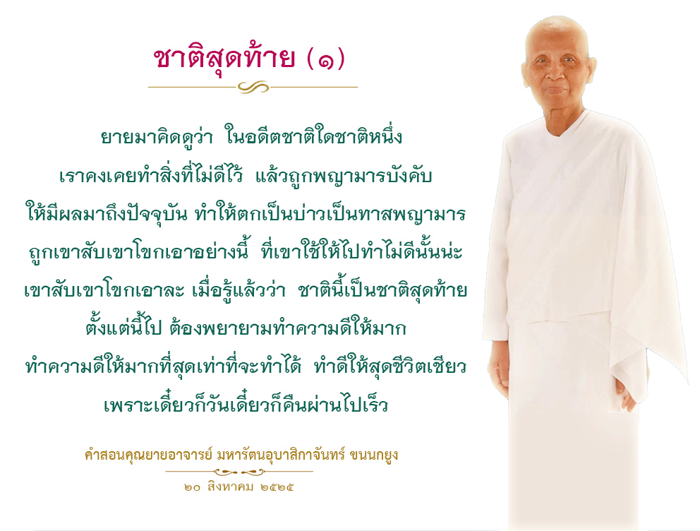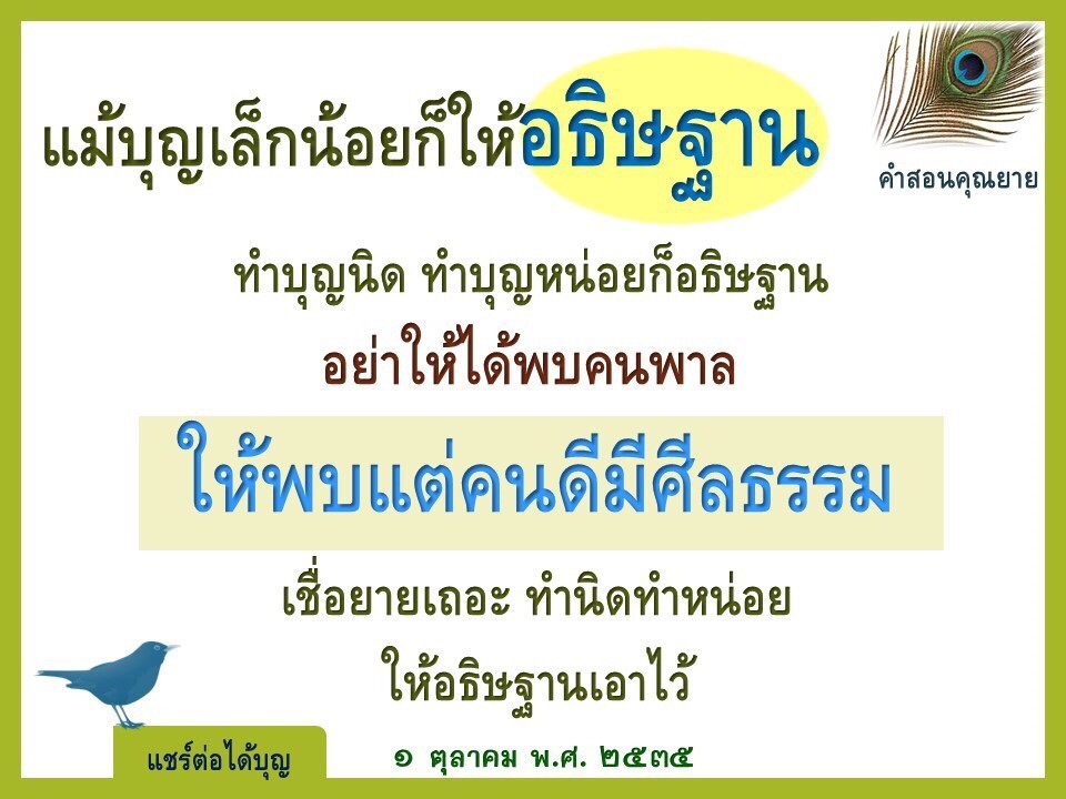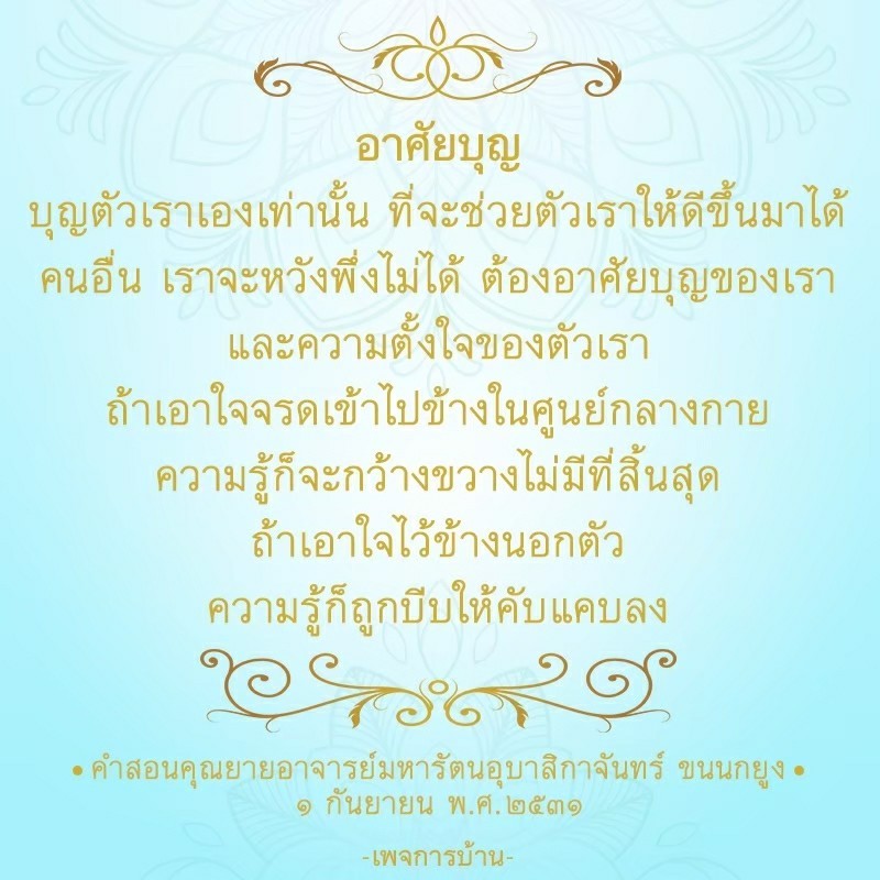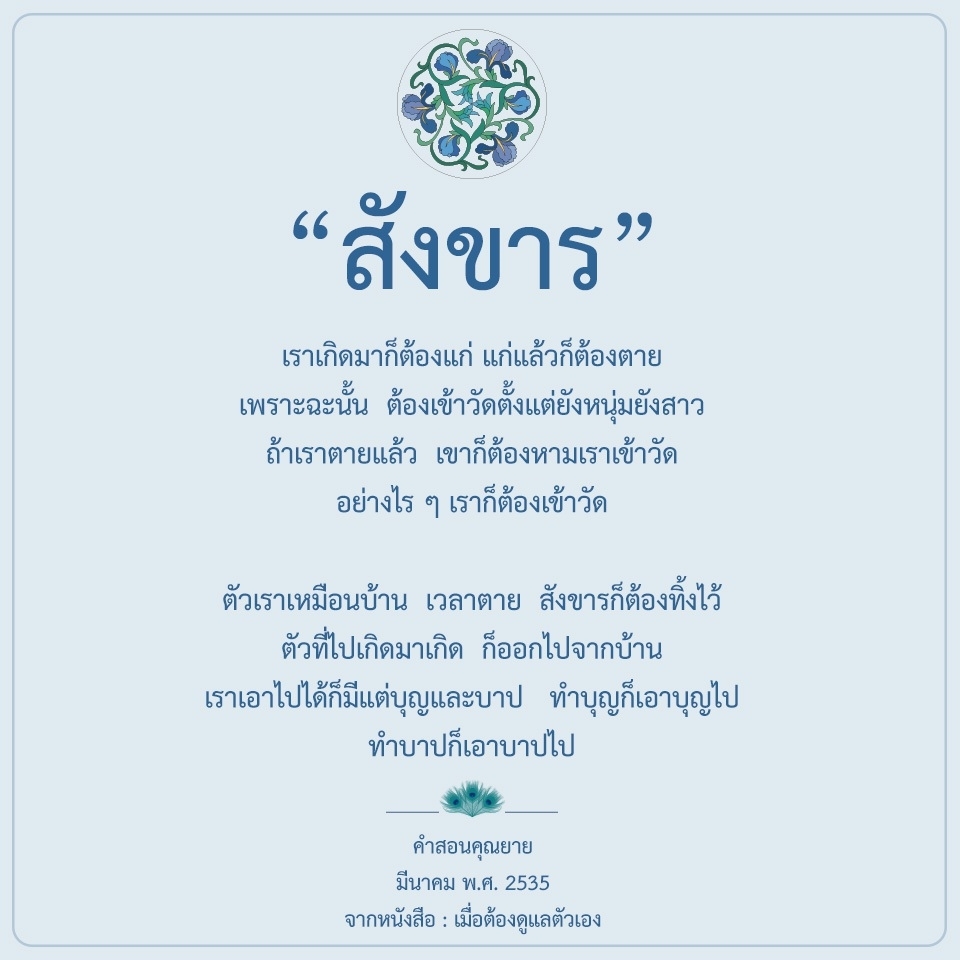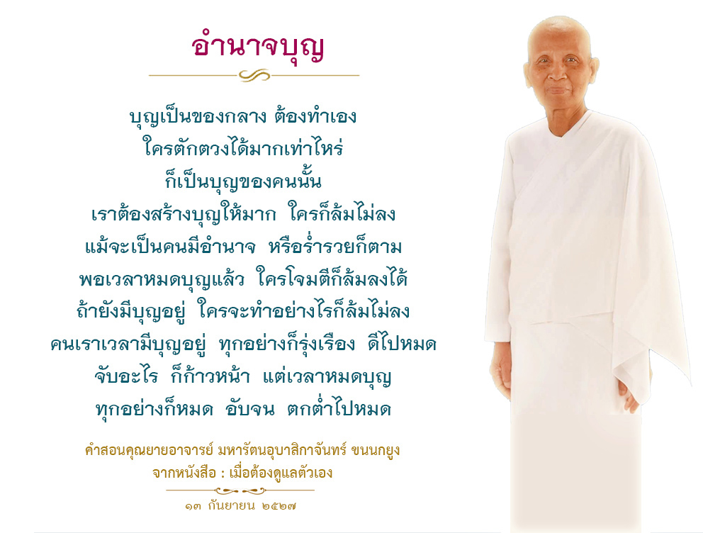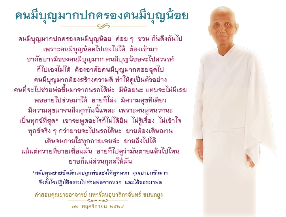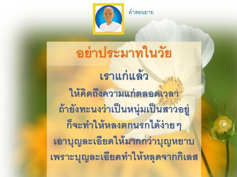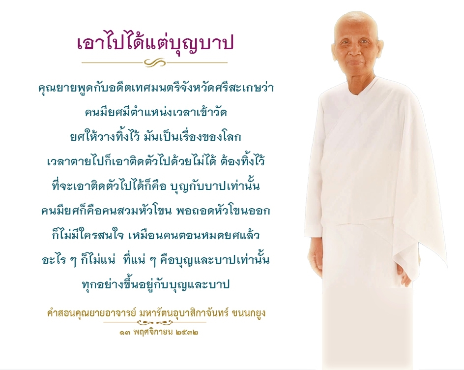 Invite your friends to come and reap merit at the temple. I feel pity for them, fearing that they may find themselves erroneously treading into an unhappy realm. Persuade them to perform merit so that they will have the opportunity to rise to Heaven or Nibbana.