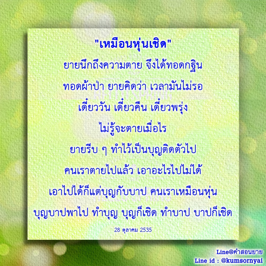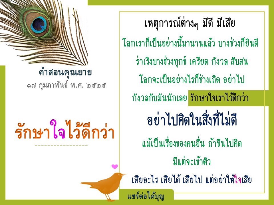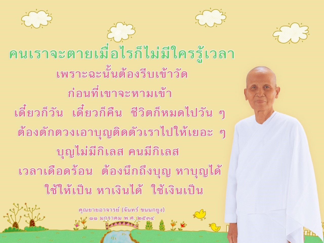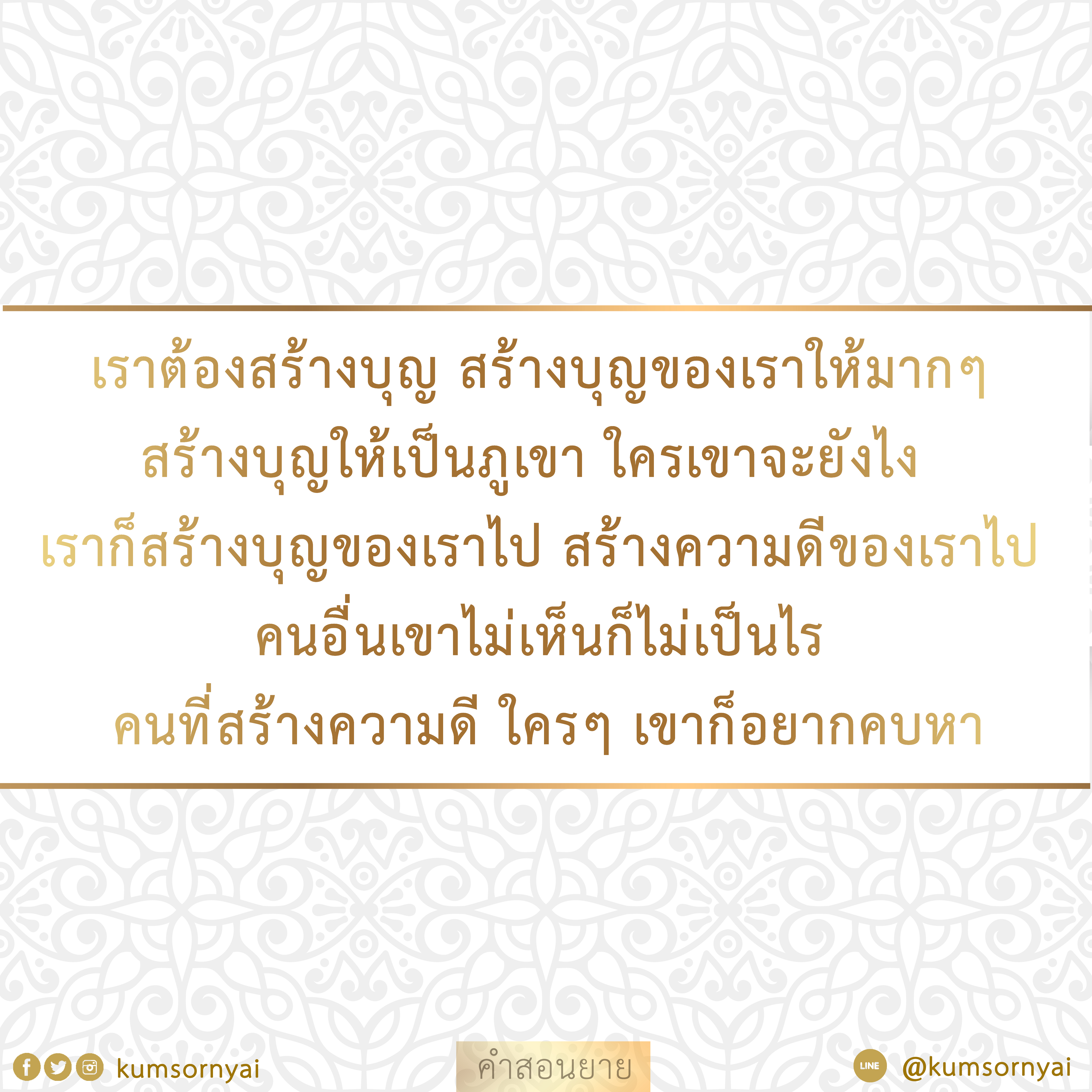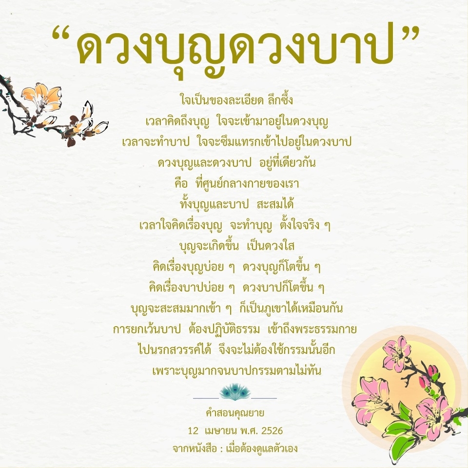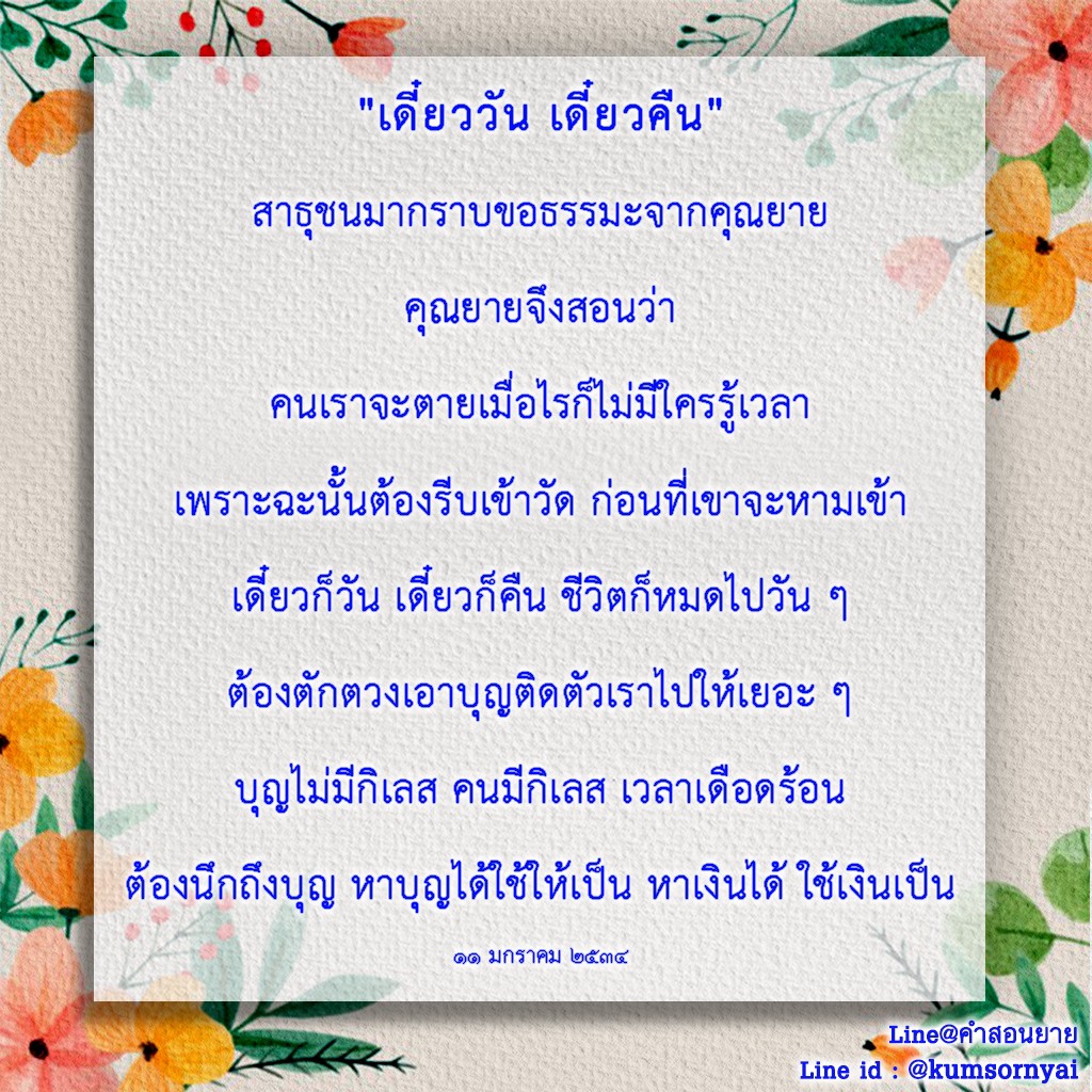 Invite your friends to come and reap merit at the temple. I feel pity for them, fearing that they may find themselves erroneously treading into an unhappy realm. Persuade them to perform merit so that they will have the opportunity to rise to Heaven or Nibbana.