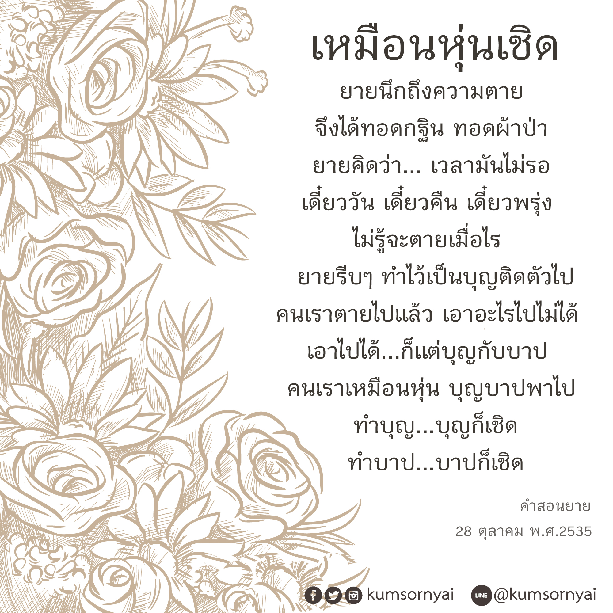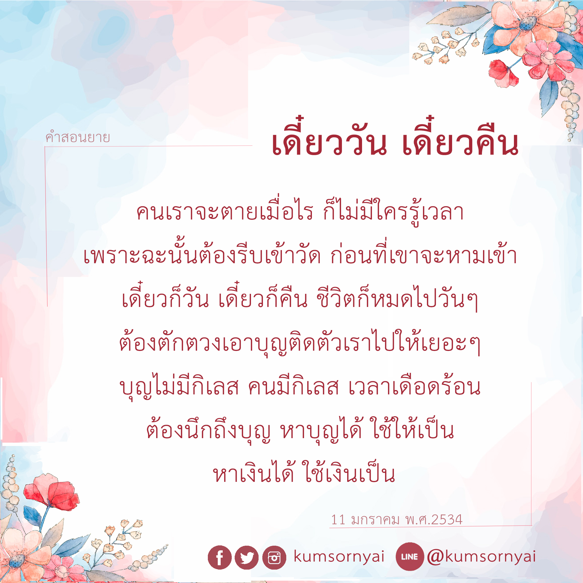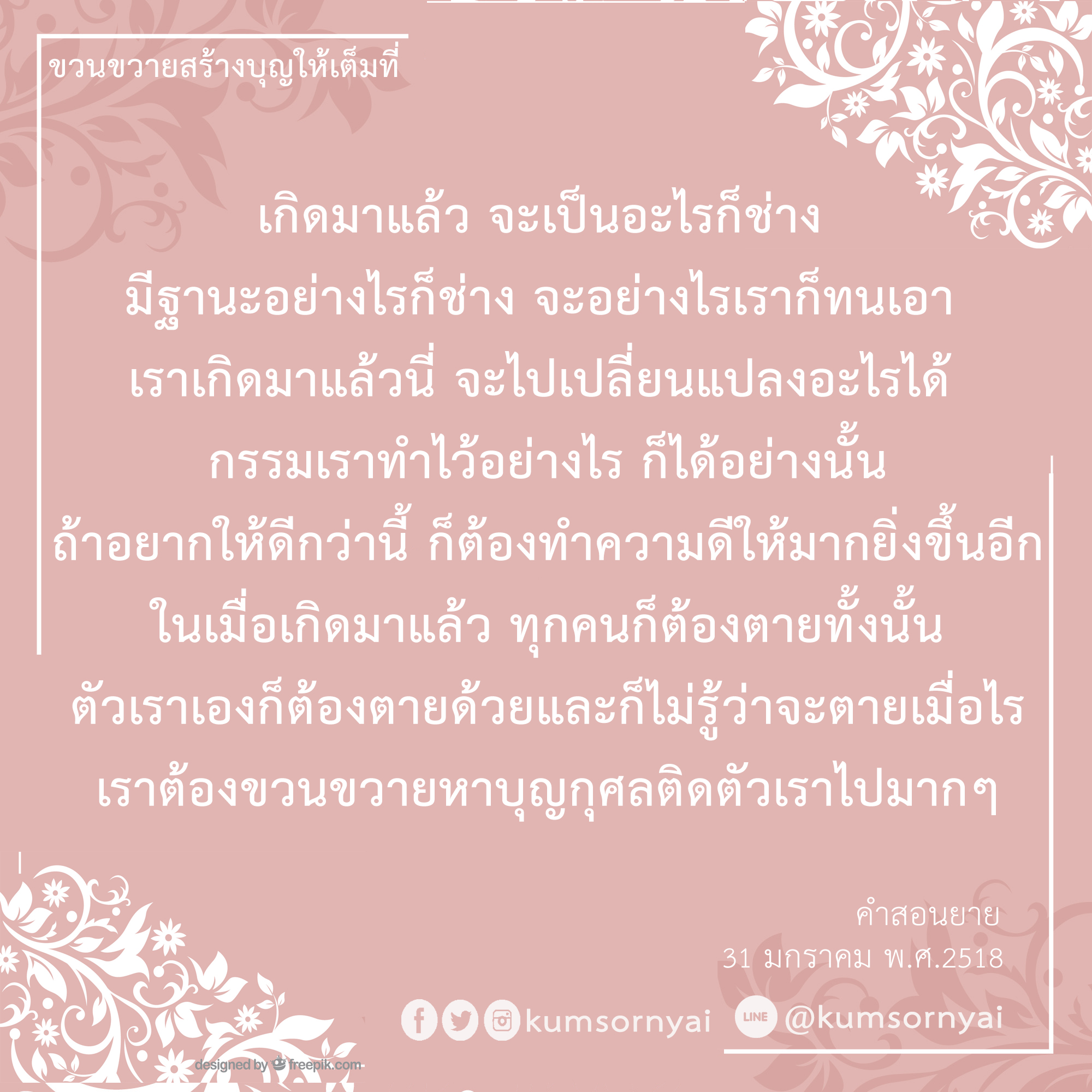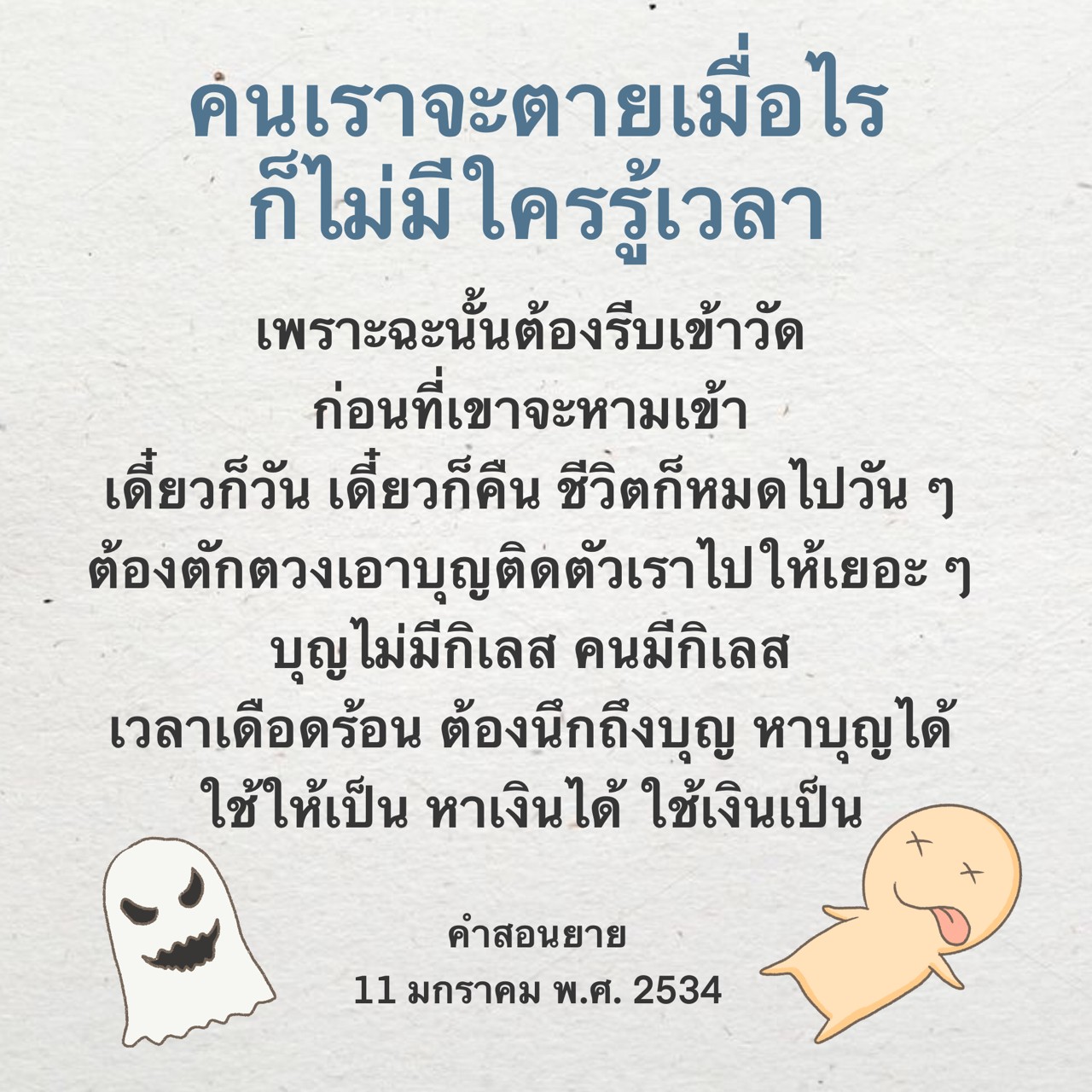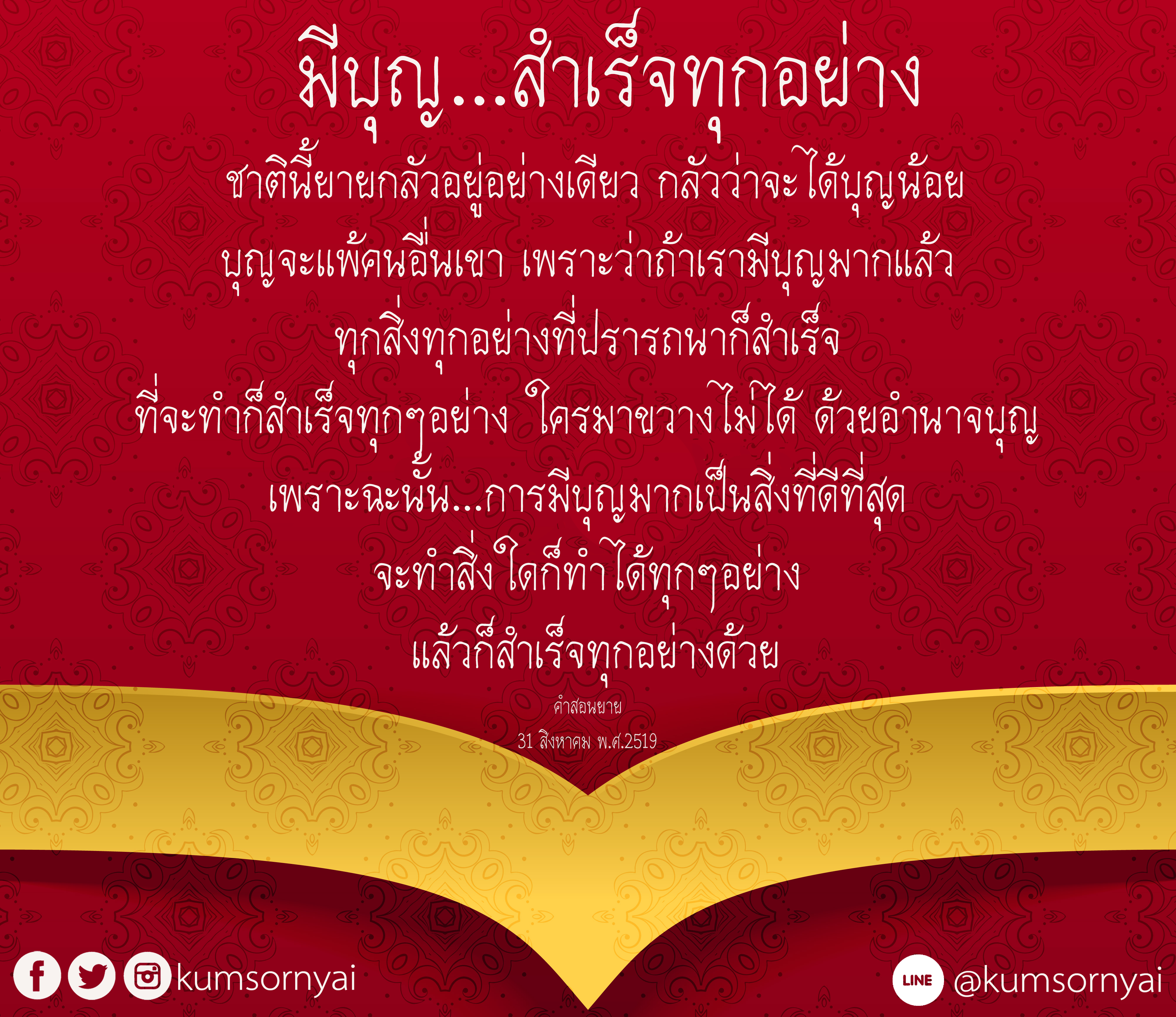 Invite your friends to come and reap merit at the temple. I feel pity for them, fearing that they may find themselves erroneously treading into an unhappy realm. Persuade them to perform merit so that they will have the opportunity to rise to Heaven or Nibbana.