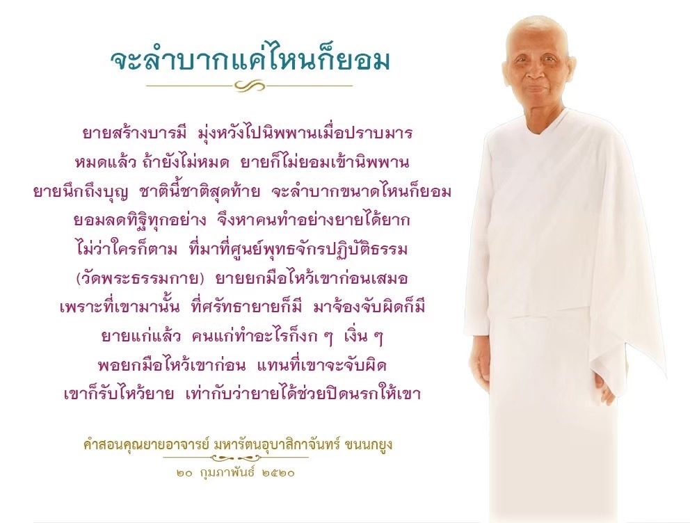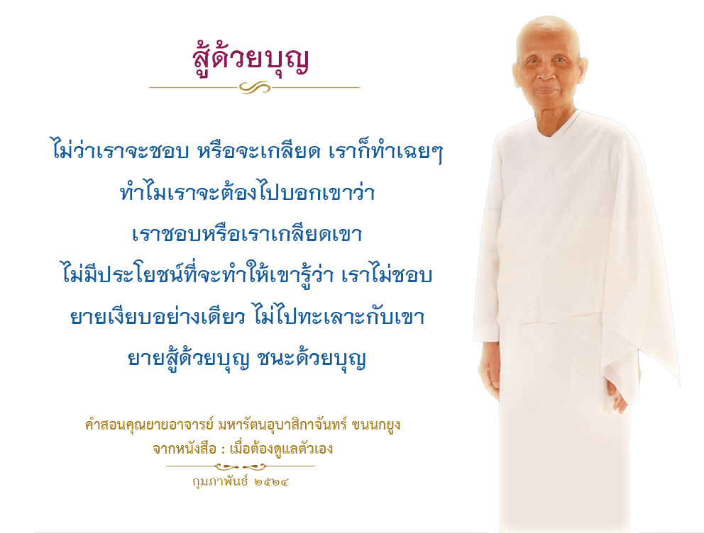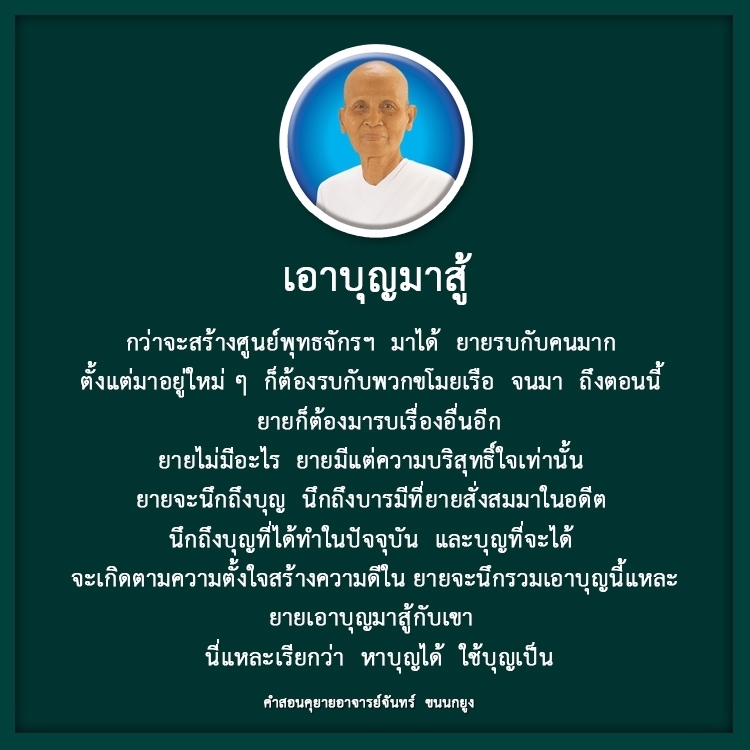 In order to establish the Buddhajak Center, I had to fight all of the time. Initially it was with the boat thieves. Even now, there is always something to resolve. But through it all, I kept my heart pure by thinking of the merits I have made in the past, the merit I am making in the present, and the merits I plan to make in the future. It gives me the strength to fight for my goals.