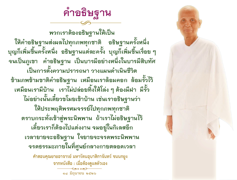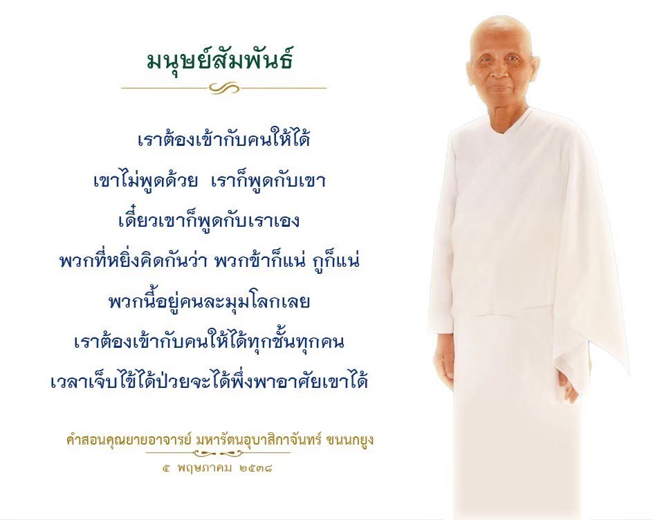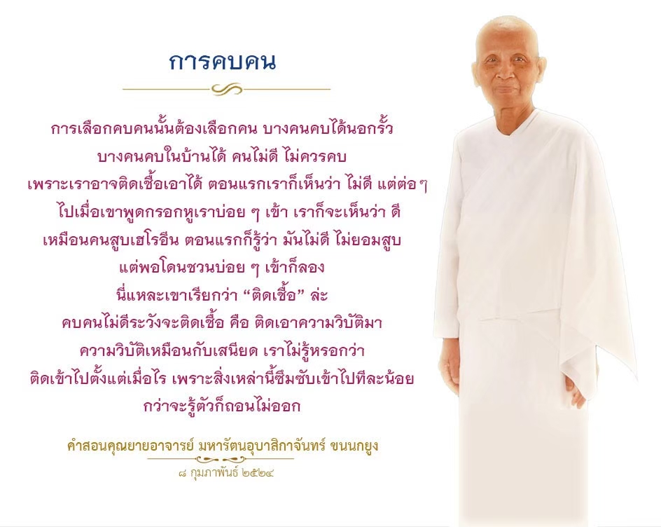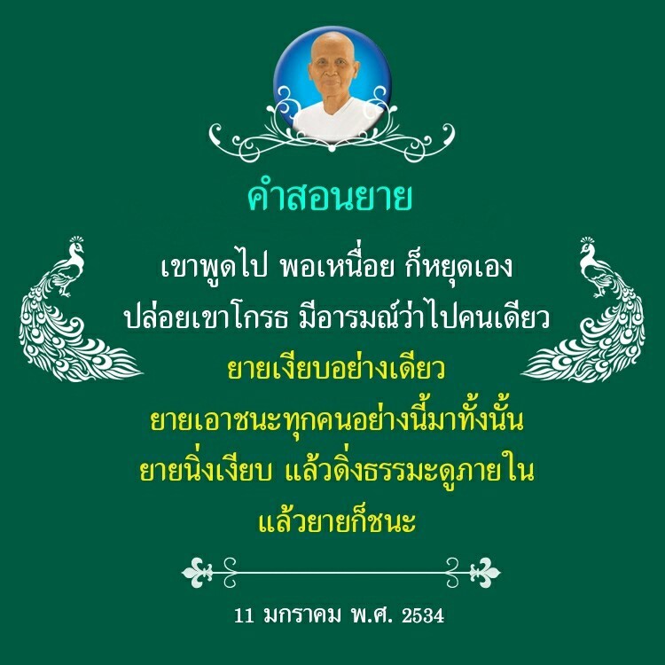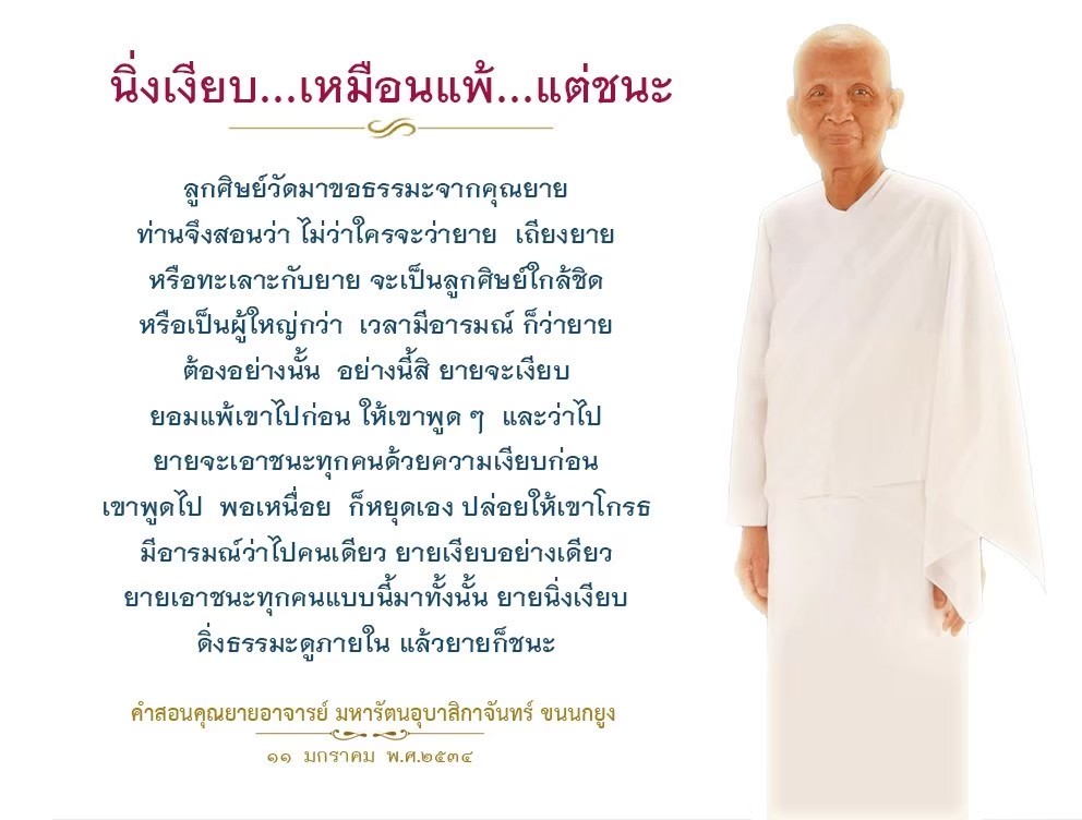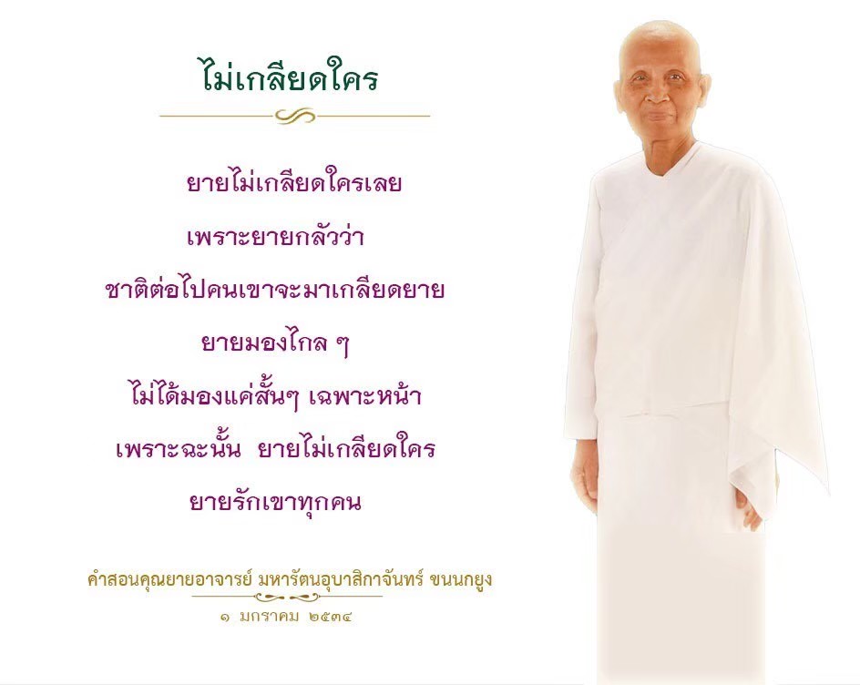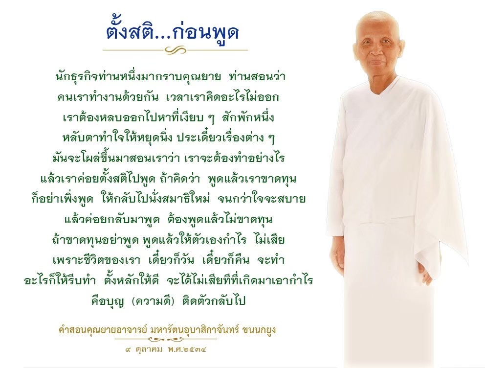 As I converse with various people, I keep my mind always in its purified state, always centered in merit and in Dhamma. No greed, anger, nor delusions are allowed to defile me.