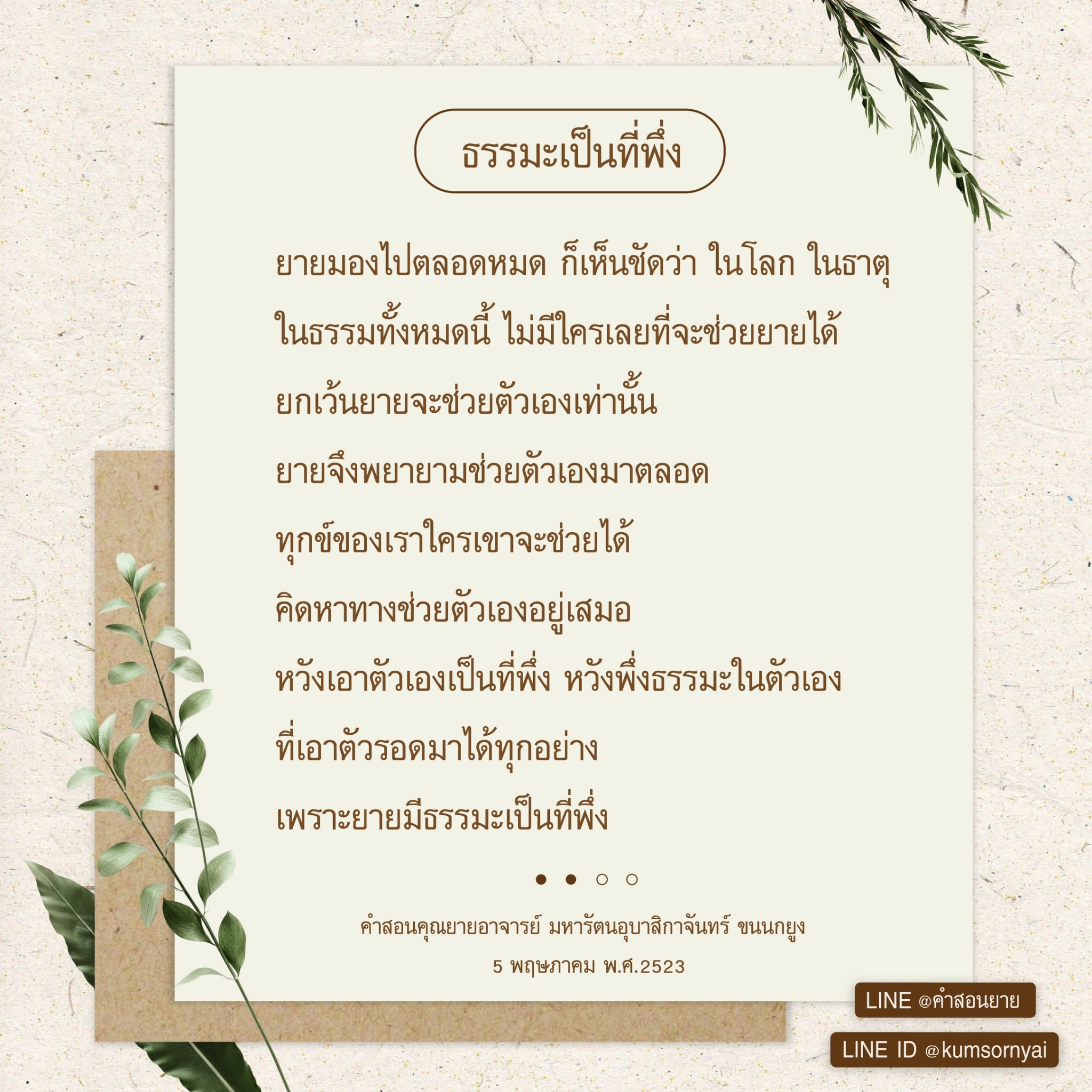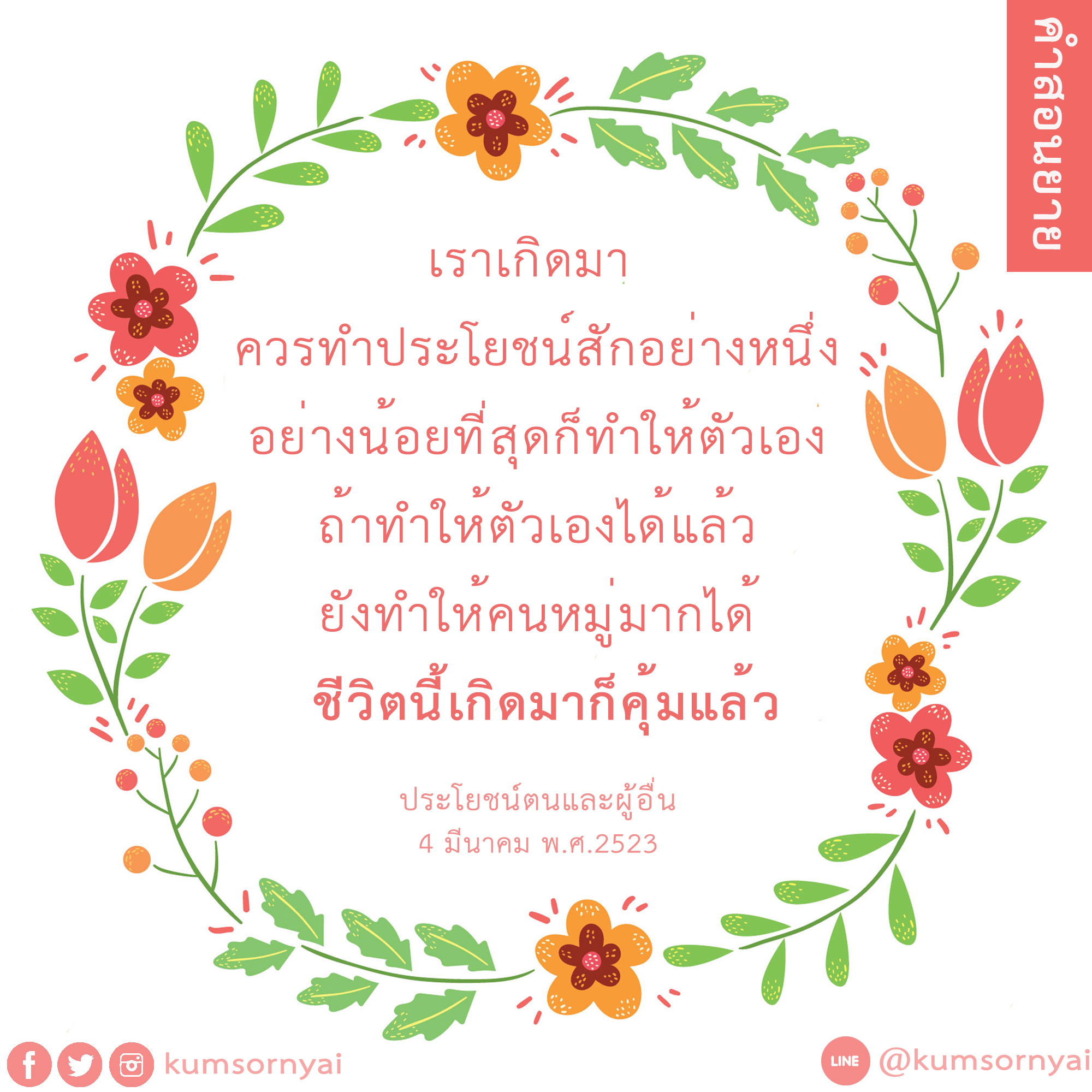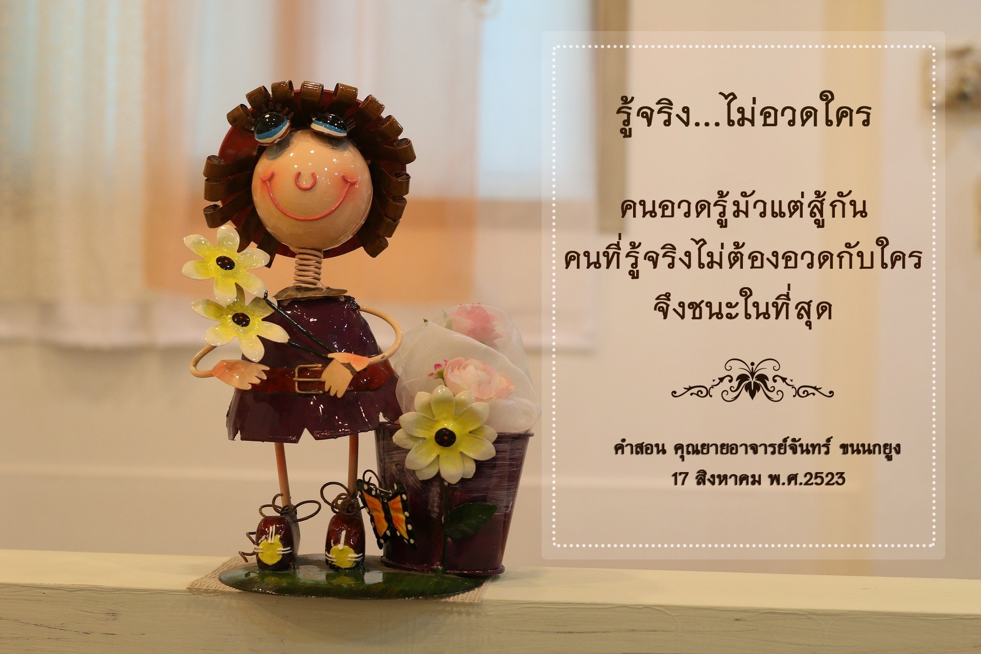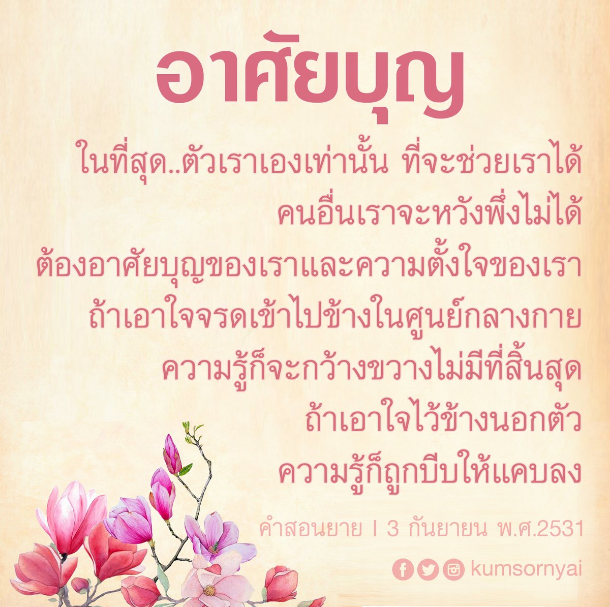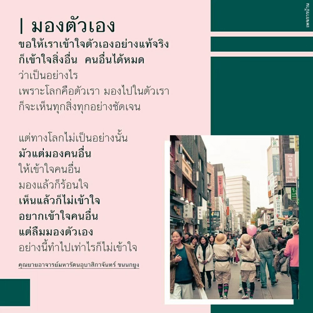 As I converse with various people, I keep my mind always in its purified state, always centered in merit and in Dhamma. No greed, anger, nor delusions are allowed to defile me.