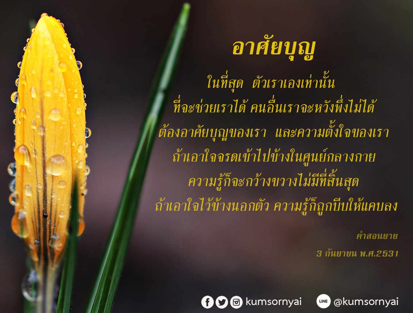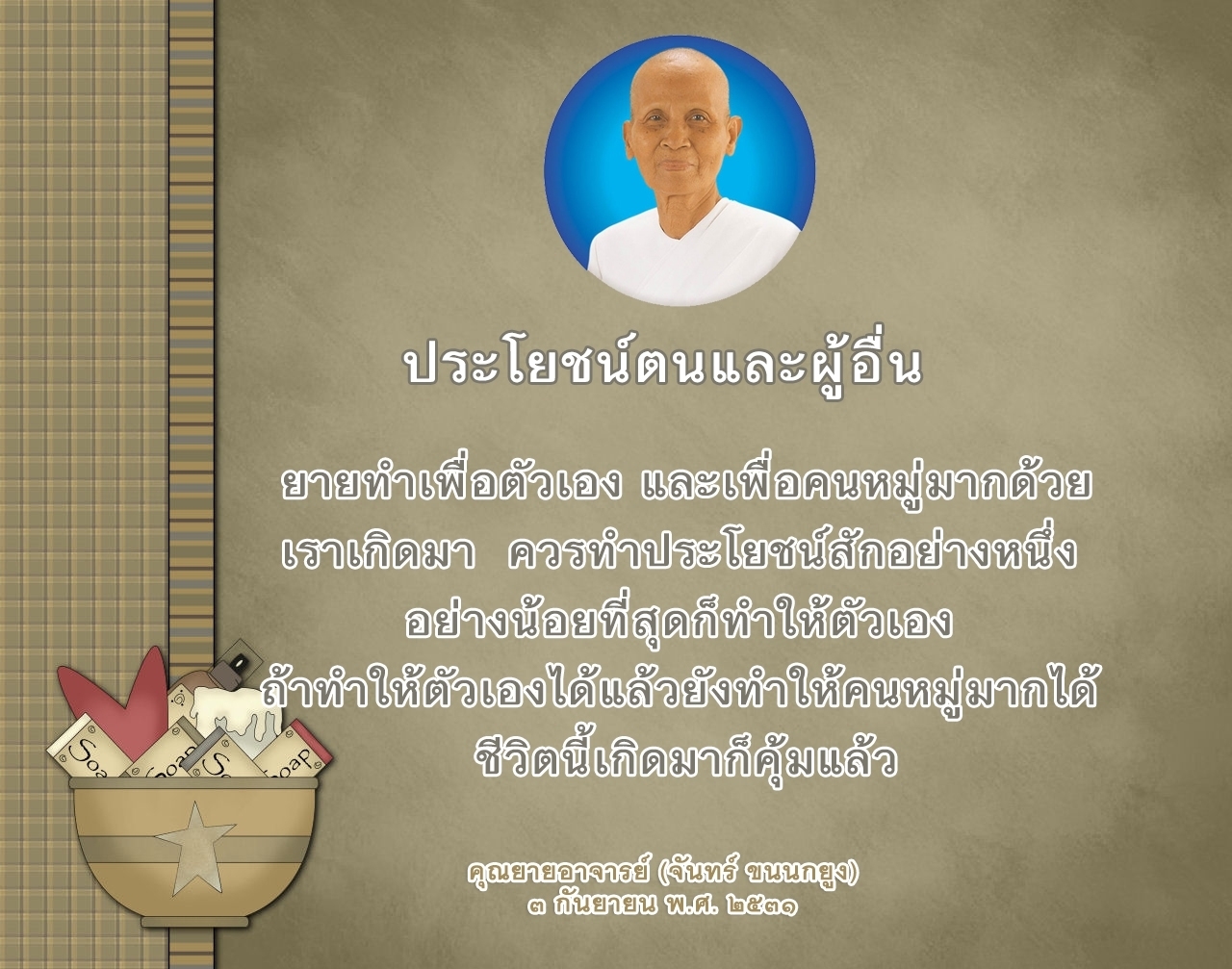 When I lived in Nakorn Chaisri, whenever a beggar came to me for rice, I gave him rice; whenever a beggar came to me for grain, I gave him grain.