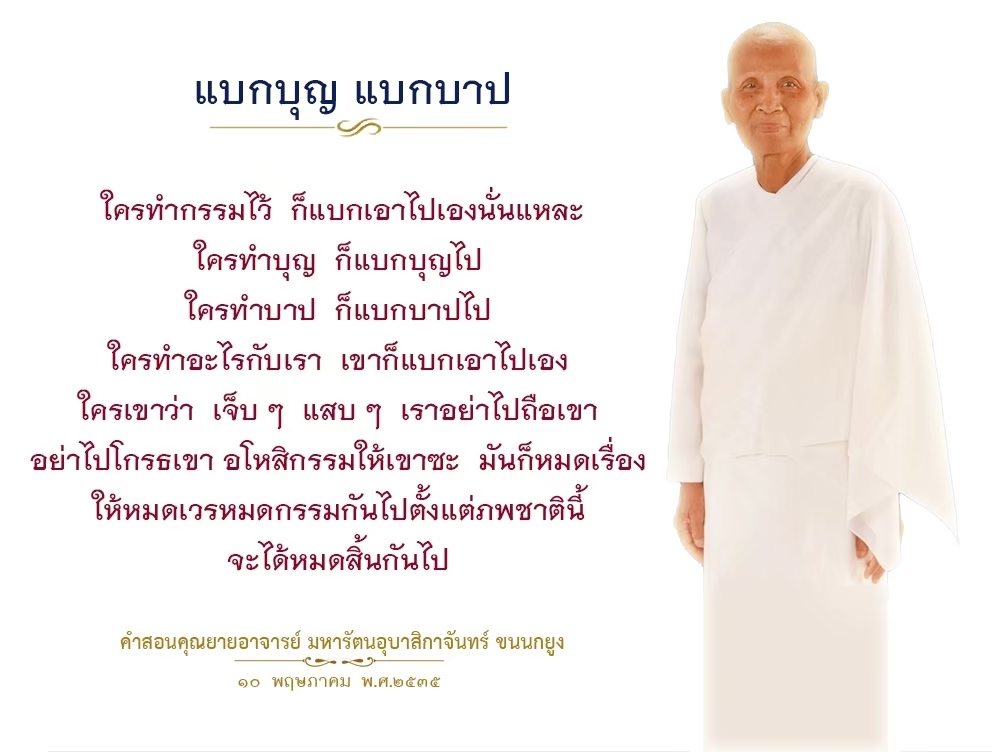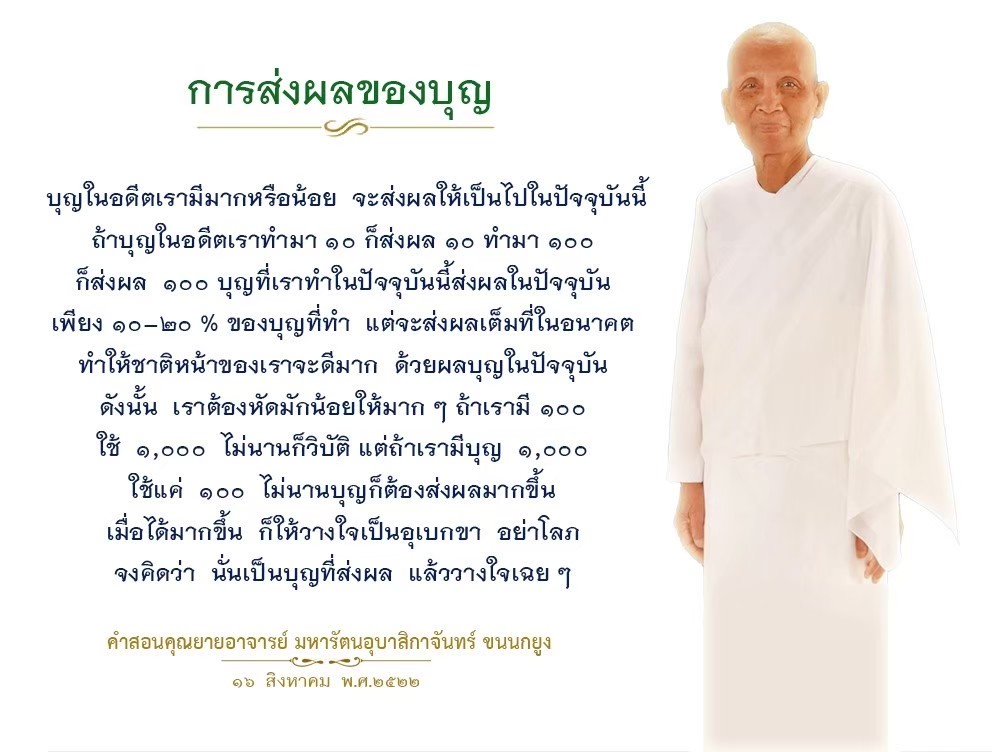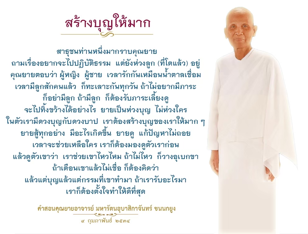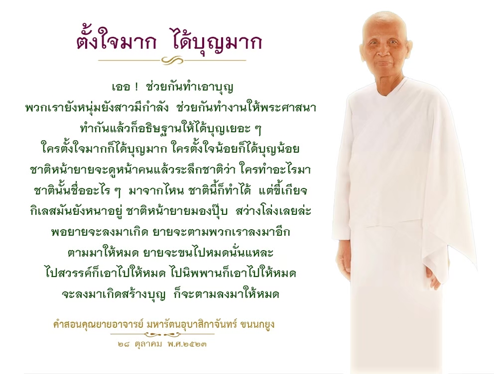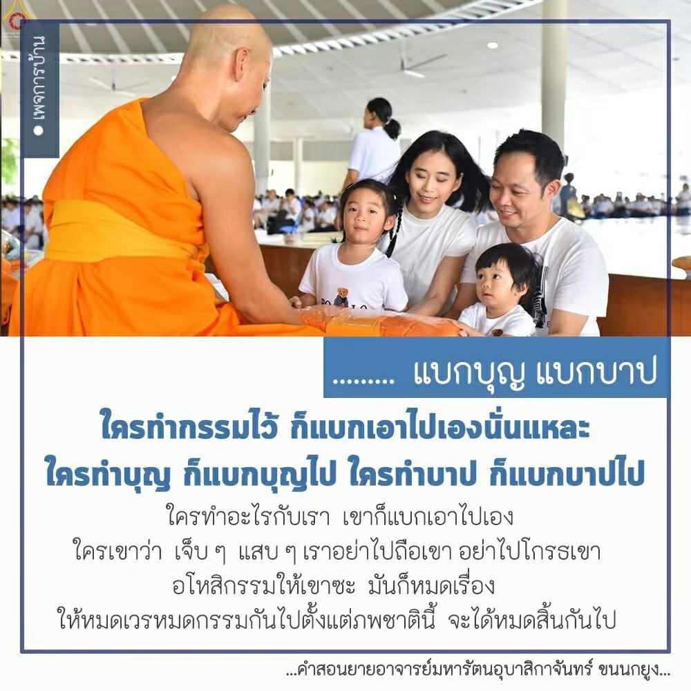 | Reap as much merit as you can. If you fail to do so, in the next life when we meet again, I will recall who did not want to make merit when given the opportunity and now he ends up having very little of it to help him keep up with others.