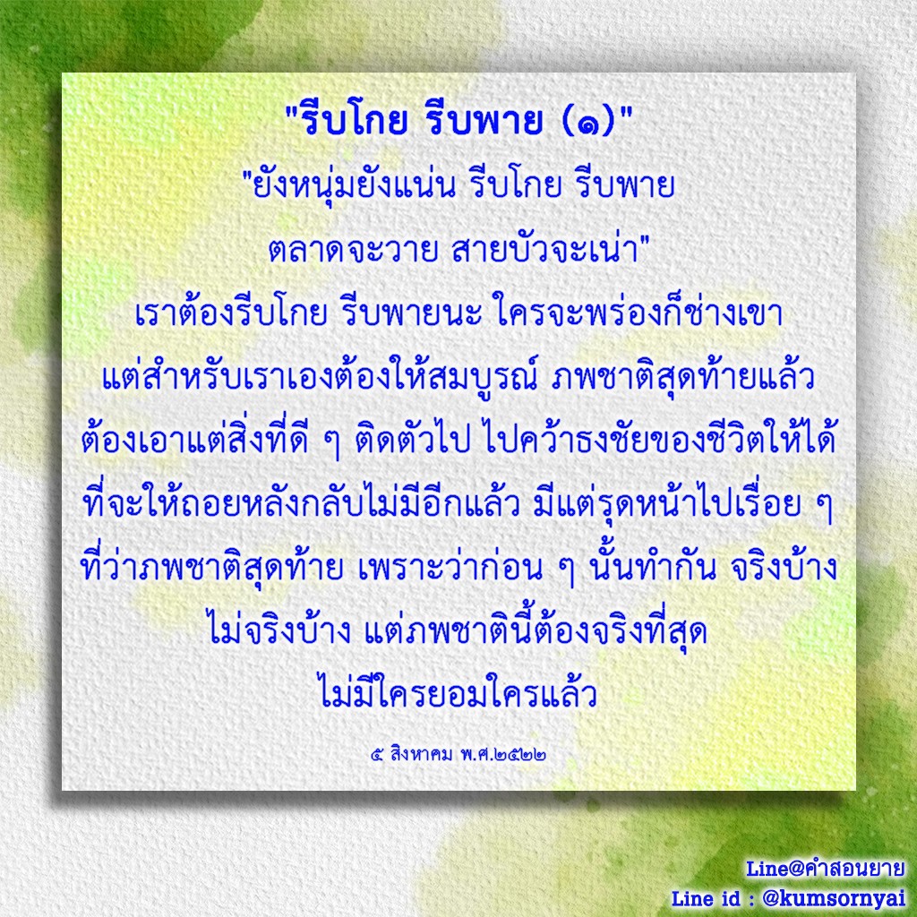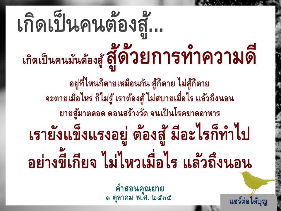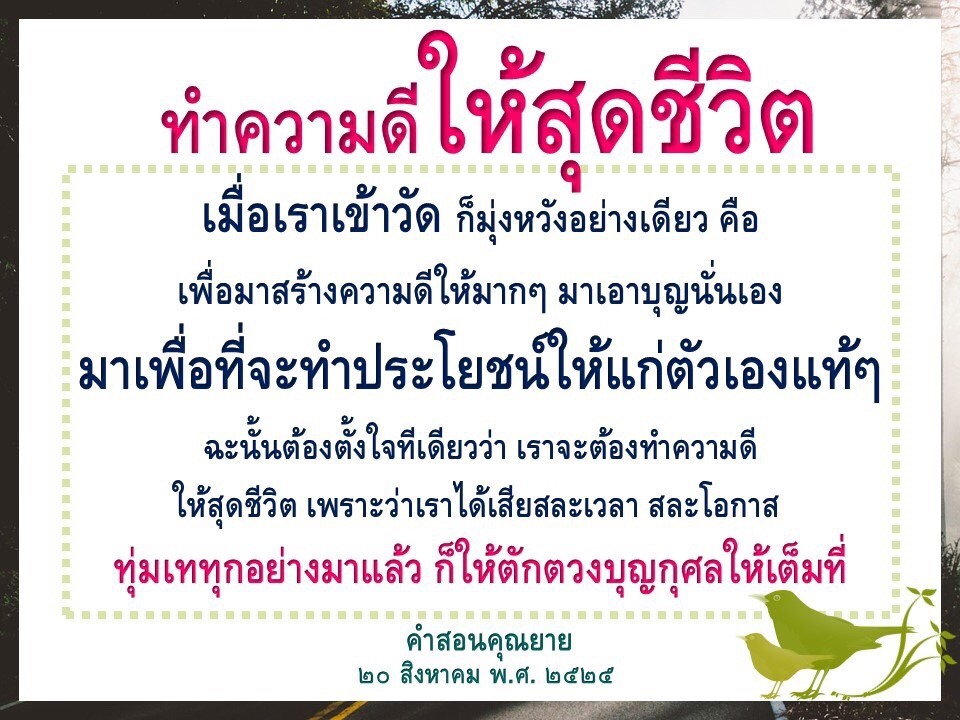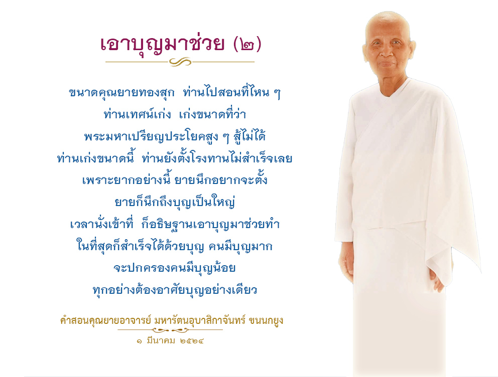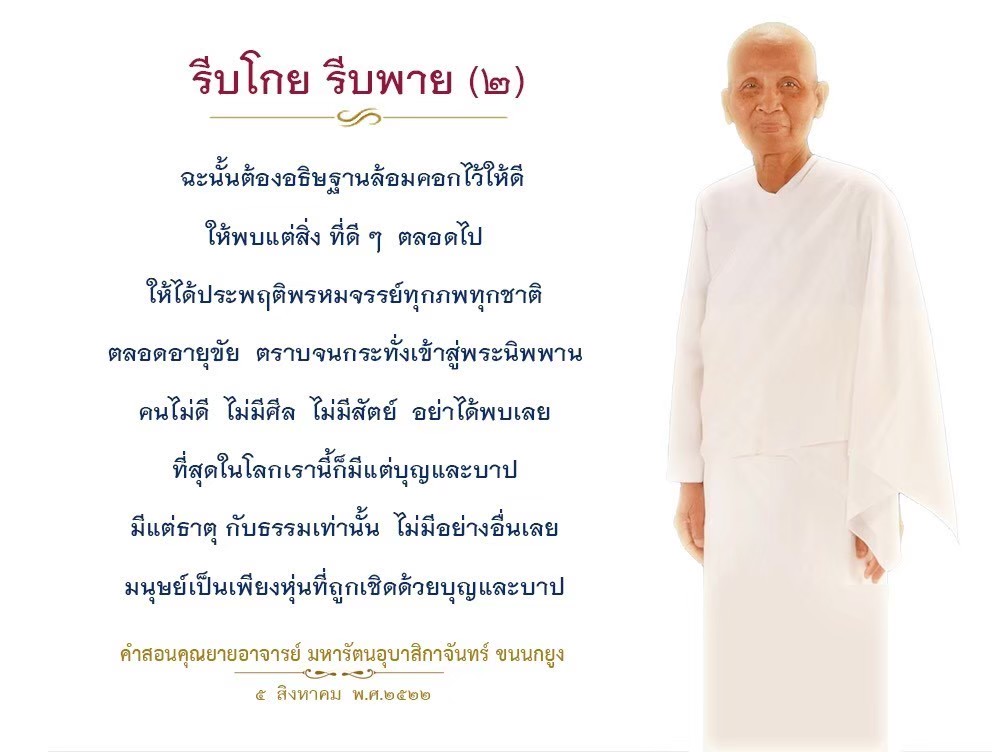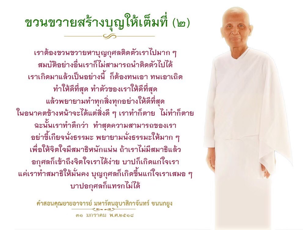 | Reap as much merit as you can. If you fail to do so, in the next life when we meet again, I will recall who did not want to make merit when given the opportunity and now he ends up having very little of it to help him keep up with others.