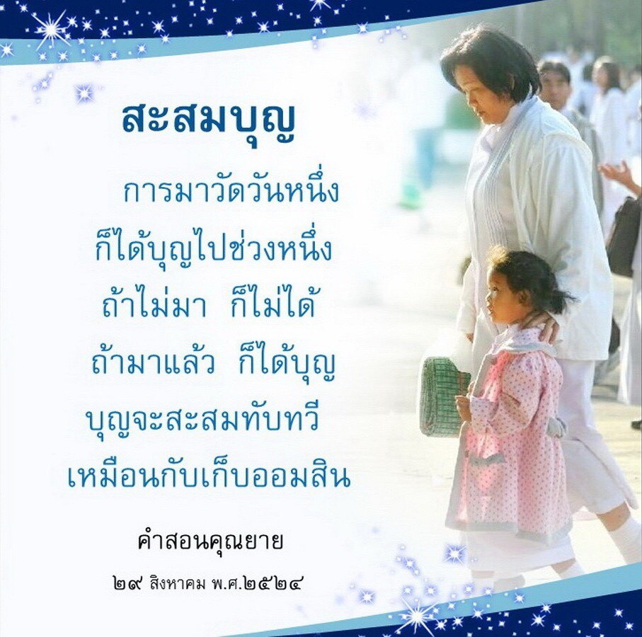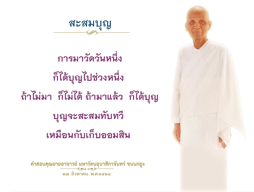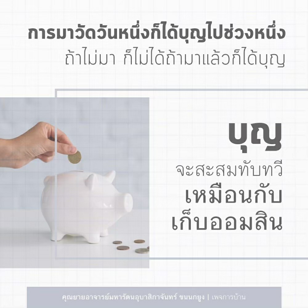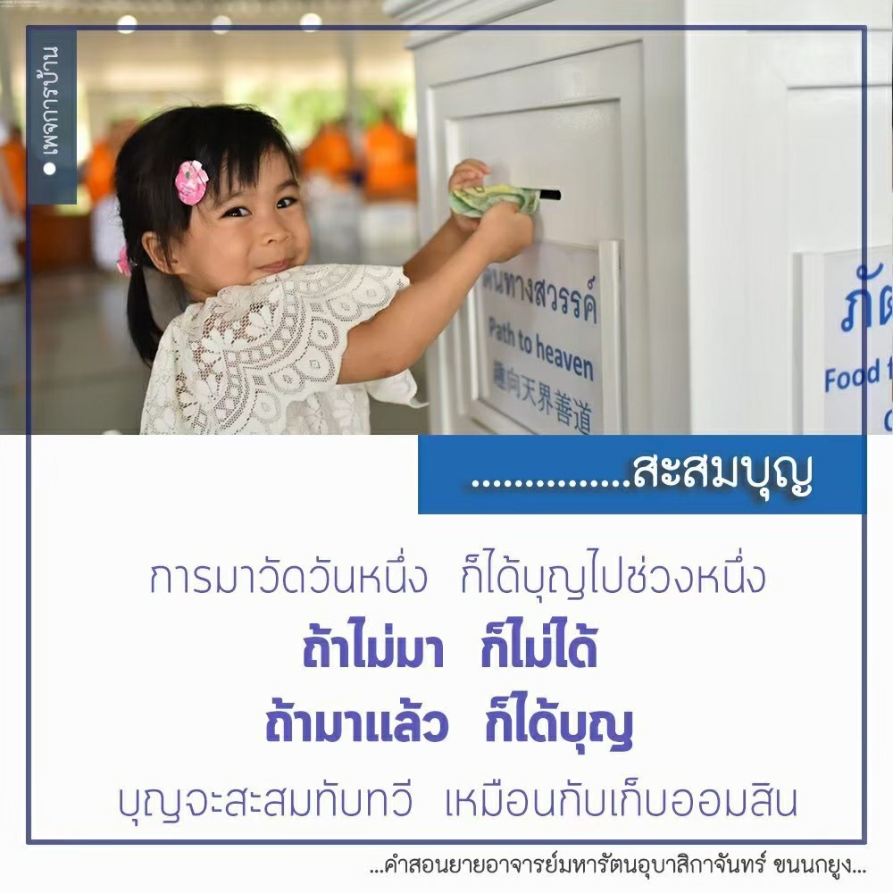 | Each time you come to the temple, you gain a little more merit. It's like putting money in your piggy bank. If you do not come you will not gain.