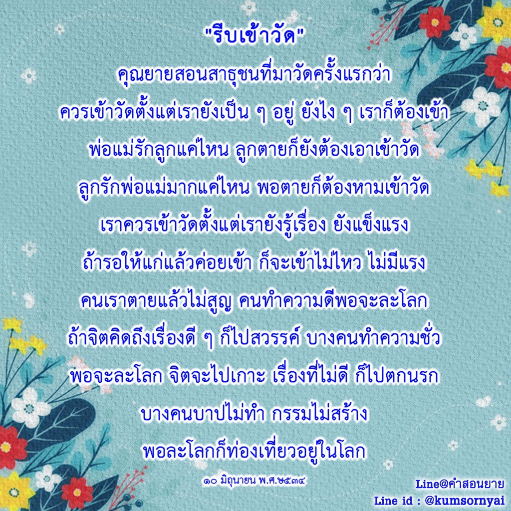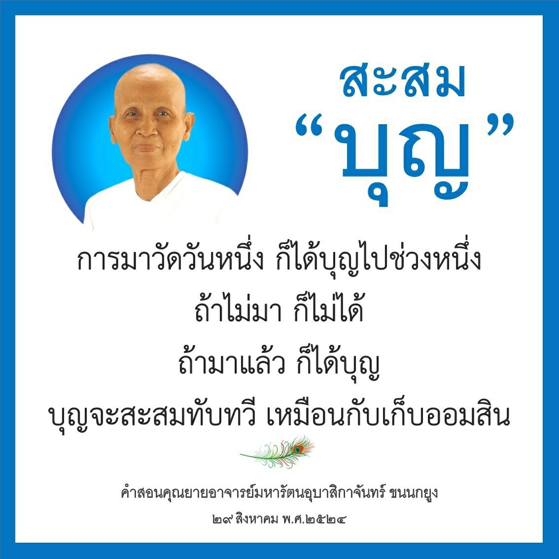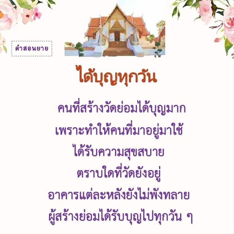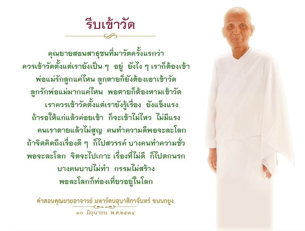 | Each time you come to the temple, you gain a little more merit. It's like putting money in your piggy bank. If you do not come you will not gain.