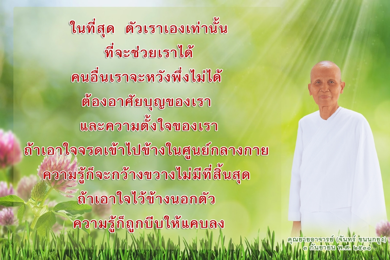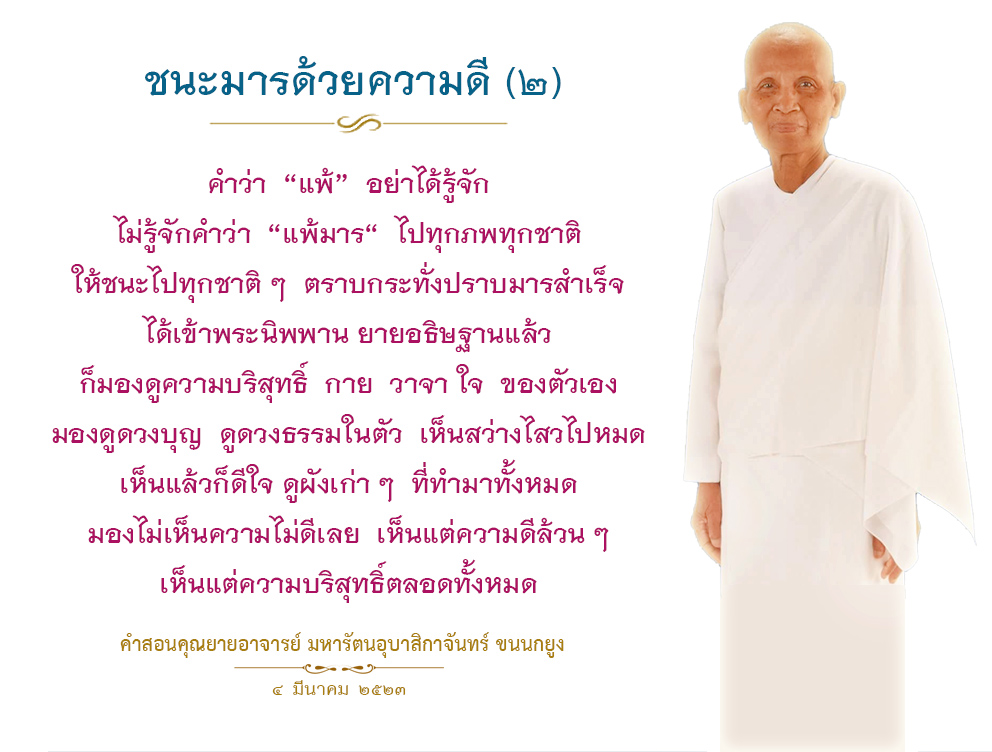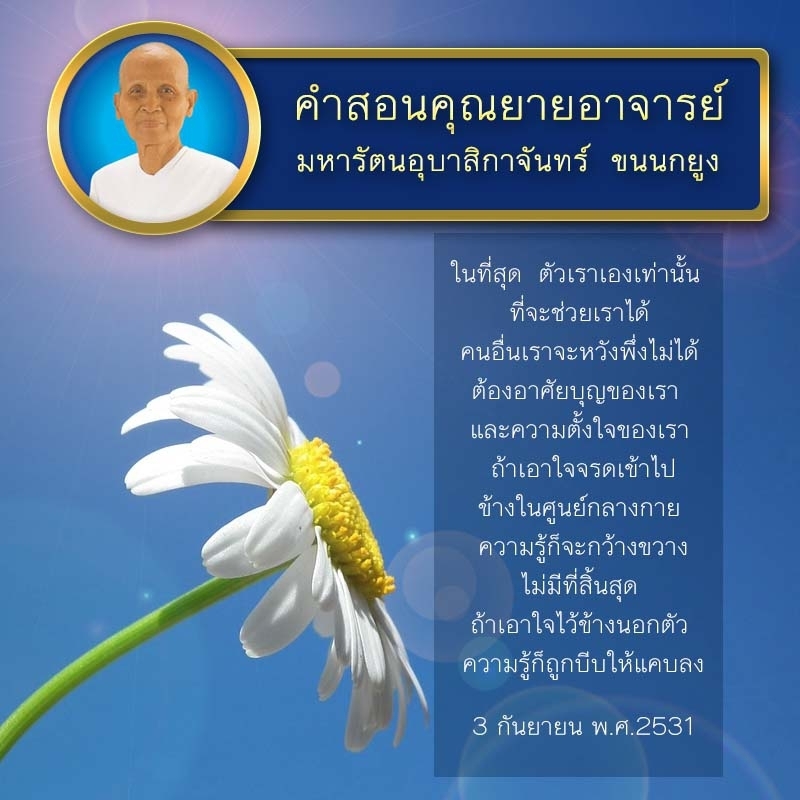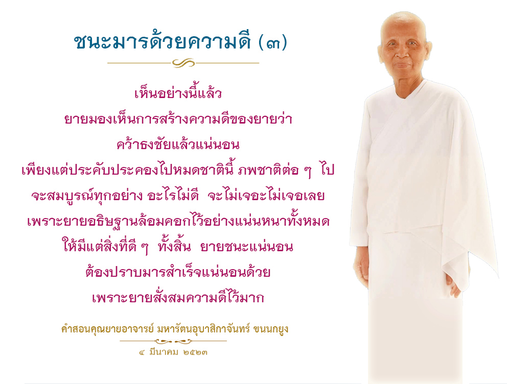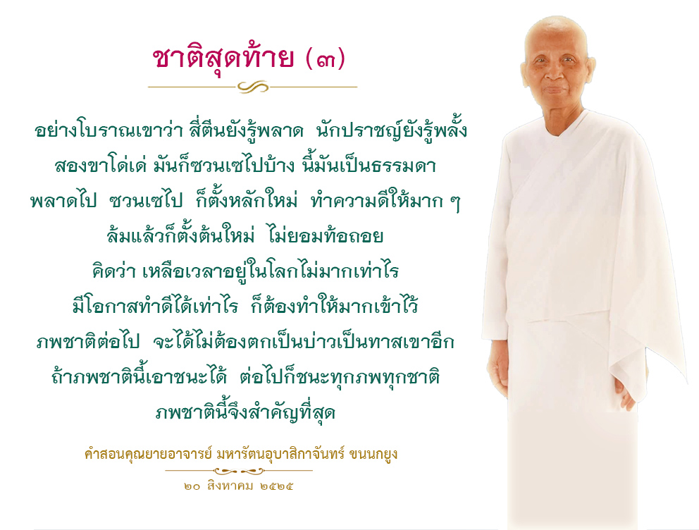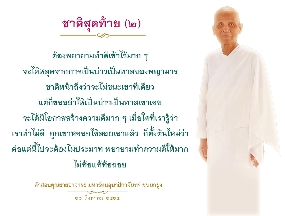 If you have not achieved that enlightened state of mind in this lifetime even though you have given your best, do not give up. Look for your victory in the next life. Keep building more and more merit than before. Continue to improve yourself. Strengthen the purity of your mind, your body, and your speech. Eventually, victory will become yours.