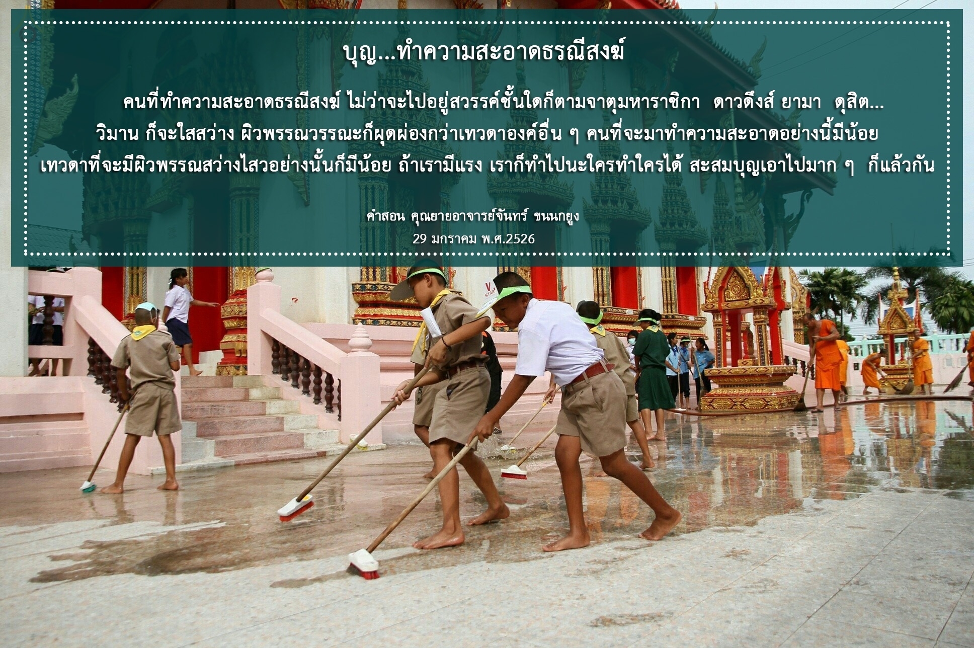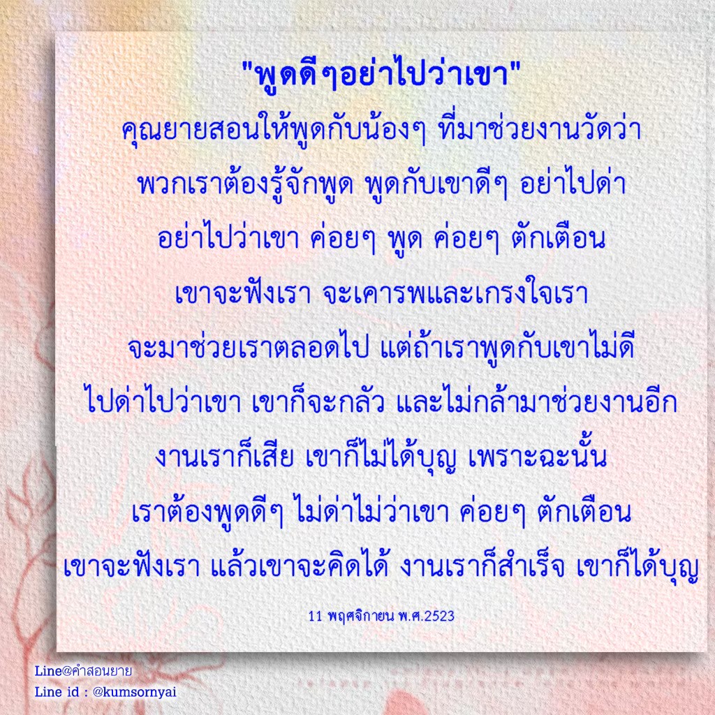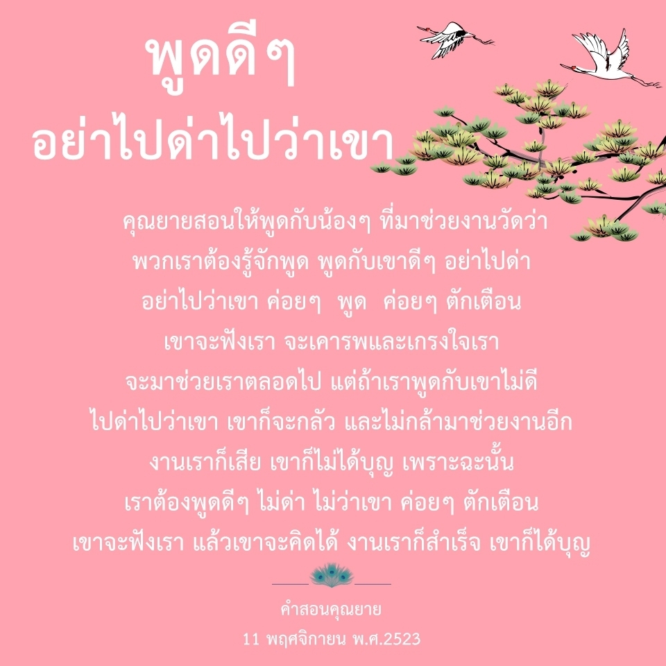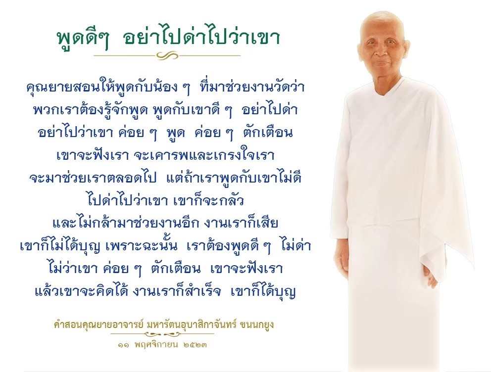 | Addressing volunteers at the temple: Kind words are better than harsh speech.
