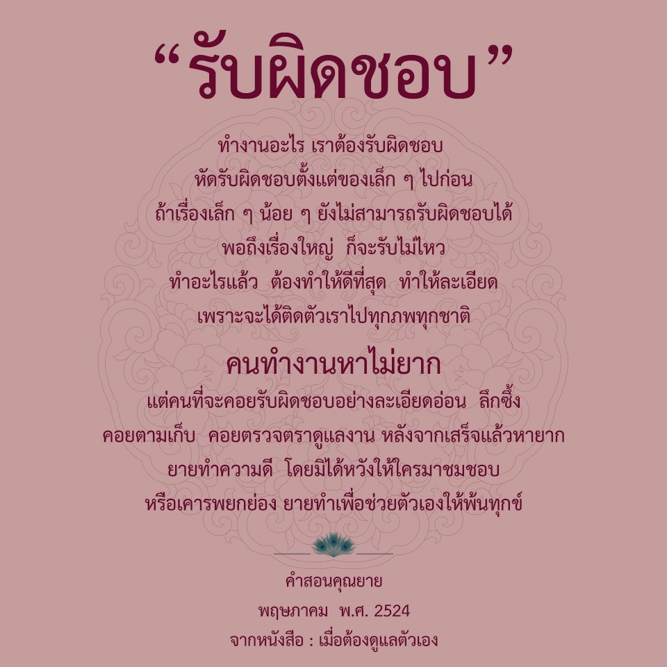 Chores and tasks are everyone's responsibilities. We should help one another. Never ignore your duty, or put it off for others to do. The task you perform is the merit you gain, not anyone else's. The task others perform is the merit they gain, not anyone else's either. You will take this merit with you to your future existence.