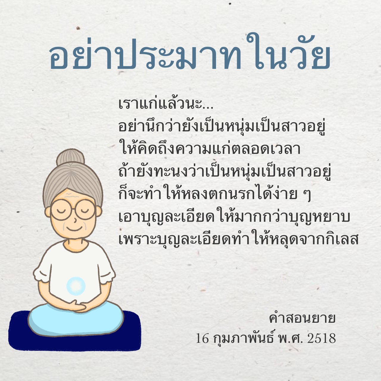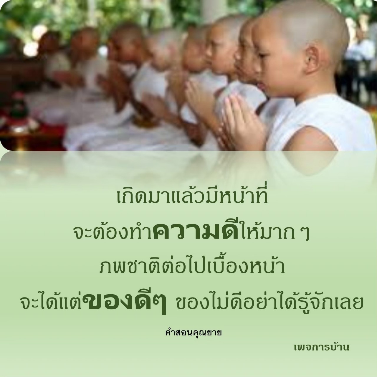 | Support one another in achieving merit! While you are still young, use that youthful energy to support the work of Buddhism. Make a wish for your good work to bring you good merit.