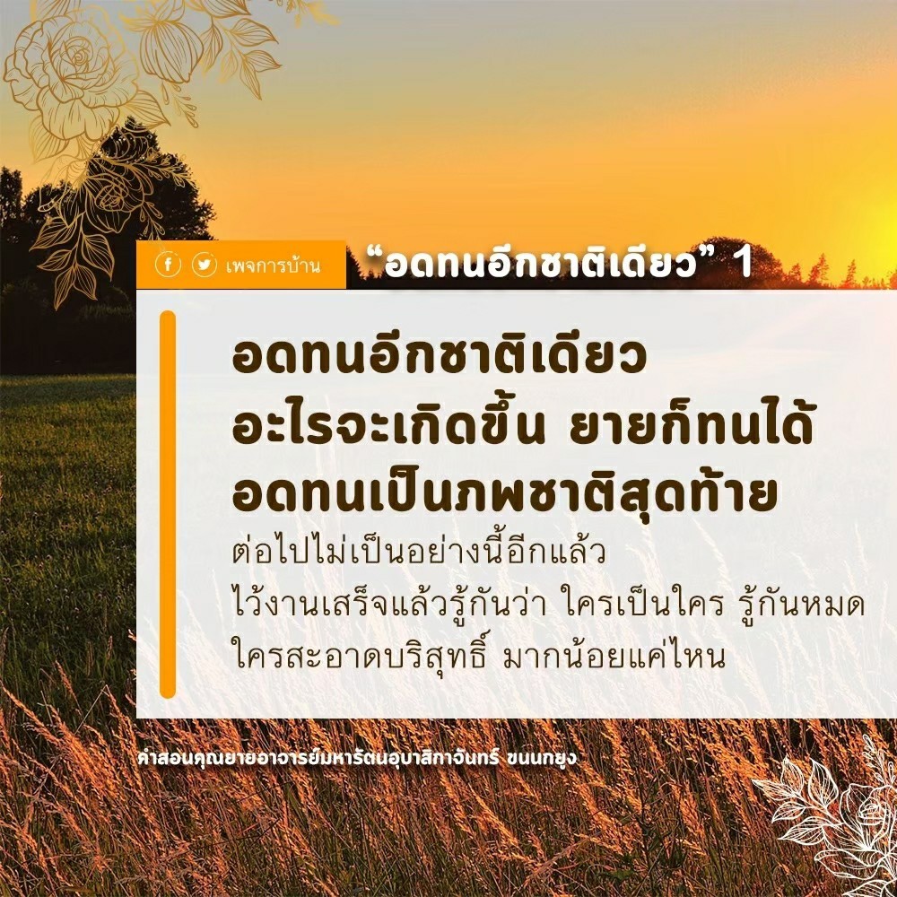 In my next lifetime, I will have the ability to look at a person and be able to recall his past existence23, know his name in that existence, and where he came from. I am too occupied to do it in this lifetime, as I still have to deal with defilements. In my next lifetime, however, it will be second nature to me; I will have an enhanced ability to see through everything. When my time comes to be reborn as a human, I will invite all of you to come with me again to continue pursuing virtues.
