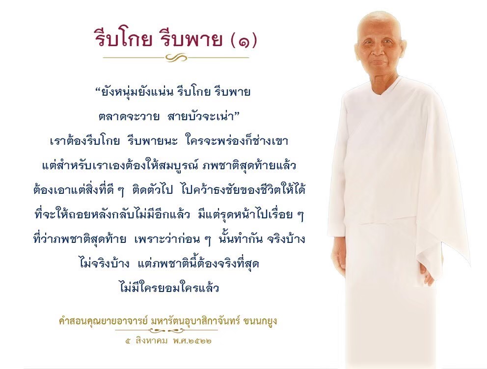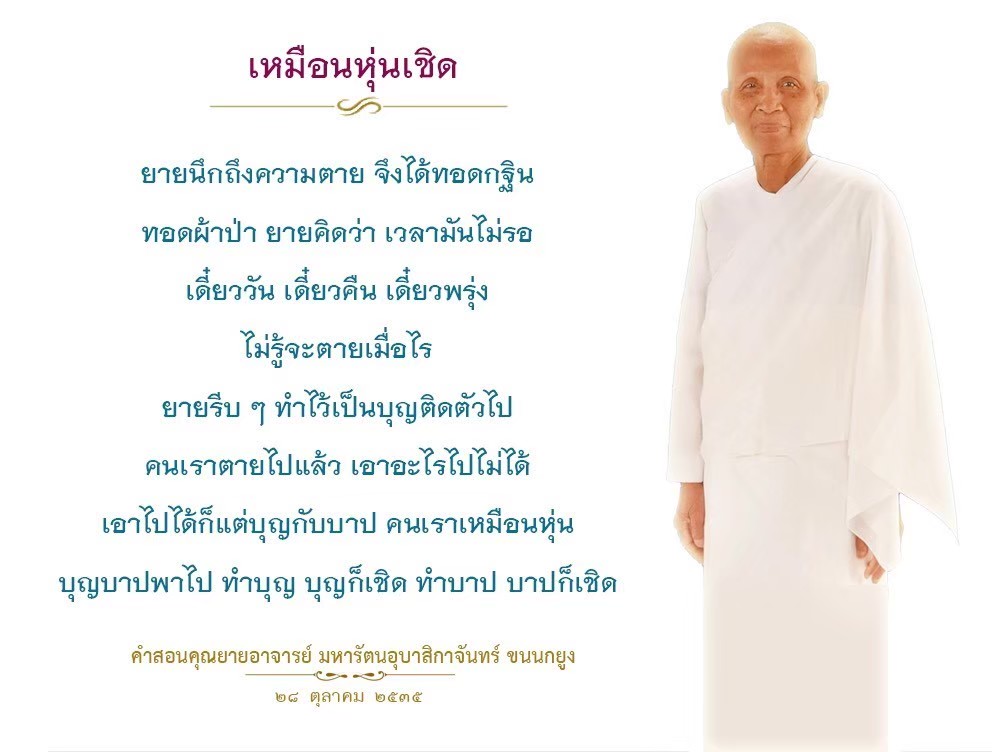 Reap as much merit as you can. If you fail to do so, in the next life when we meet again, I will recall who did not want to make merit when given the opportunity and now he ends up having very little of it to help him keep up with others.