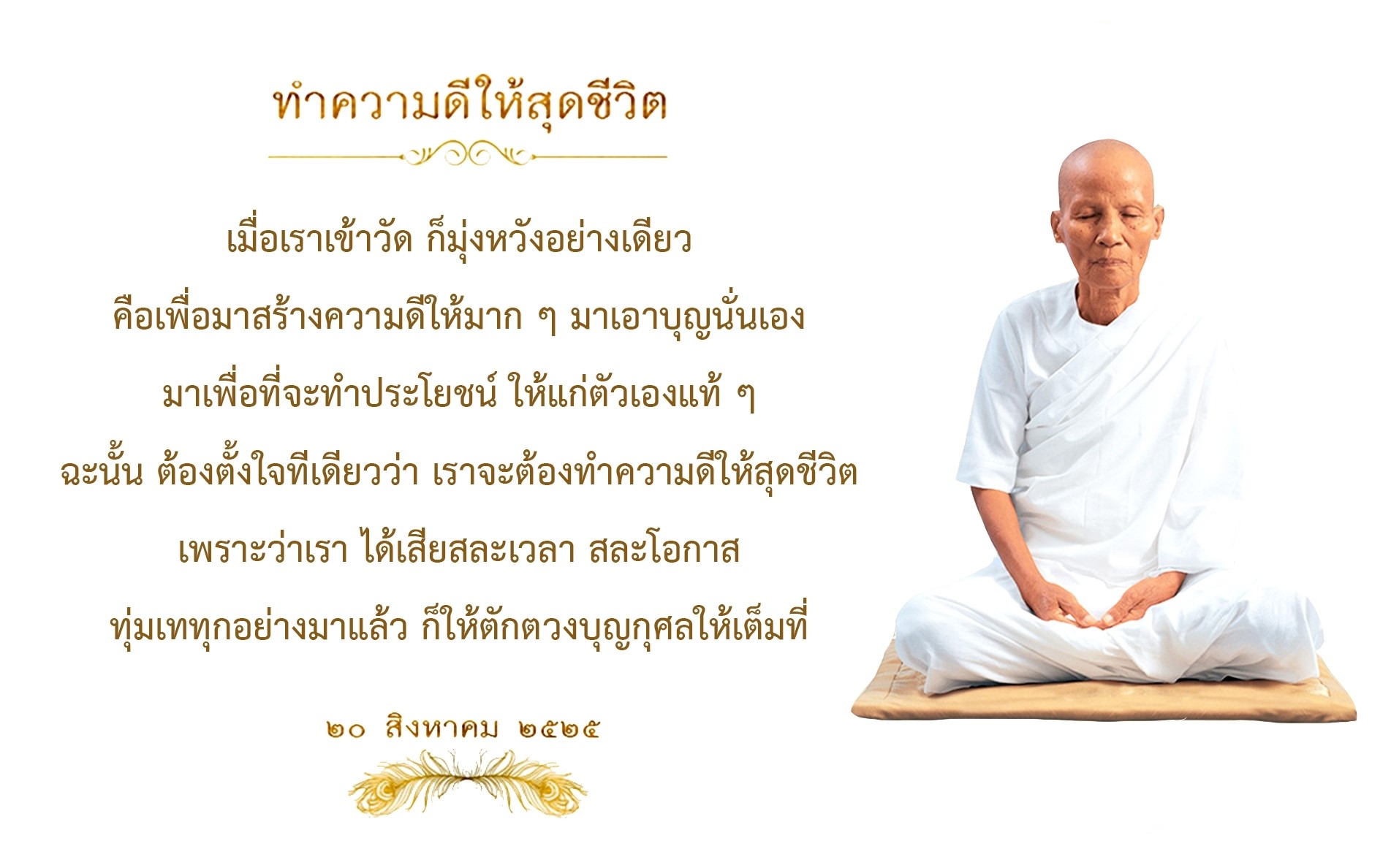 You come to the temple because you have one thing in mind: to build virtues and to gain merit, creating benefits for yourself. You have already committed the time and effort to be at the temple, so while you are here you should reap the maximum benefit. Give your utmost in doing good deeds.