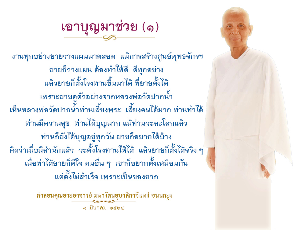 All good work takes good planning. When I built the Buddhachakka Center, I had to plan everything very carefully. I knew building an alms house (refectory) at the Buddhajak Center was possible by example of the Most Venerable Luang Por Wat Paknam, who had built a large alms house capable of feeding many monks at his temple. His accomplishment brought him a lot of joy and a lot of merit. Even after his death, it still continues to give him plenty of merit.